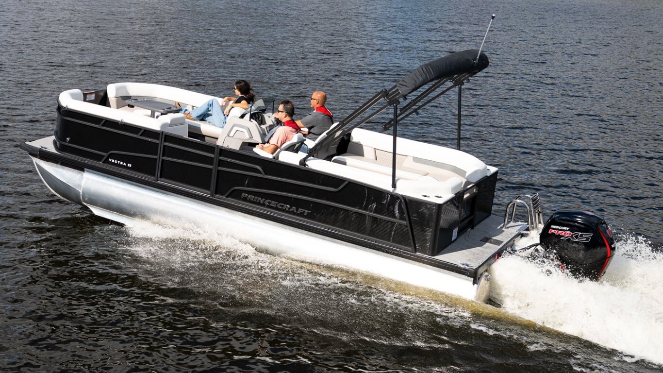 • Altitude package includes: 3D Princecraft® black chrome logo on both sides and front door, LED docking lights, deluxe driver seat (if applicable passenger captain's chair with slider), LED lights under driver helm and furniture
