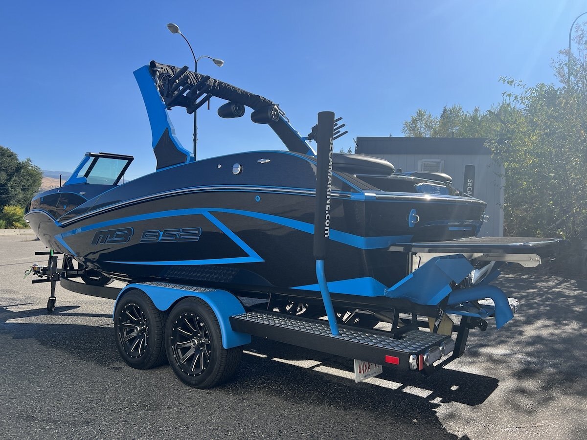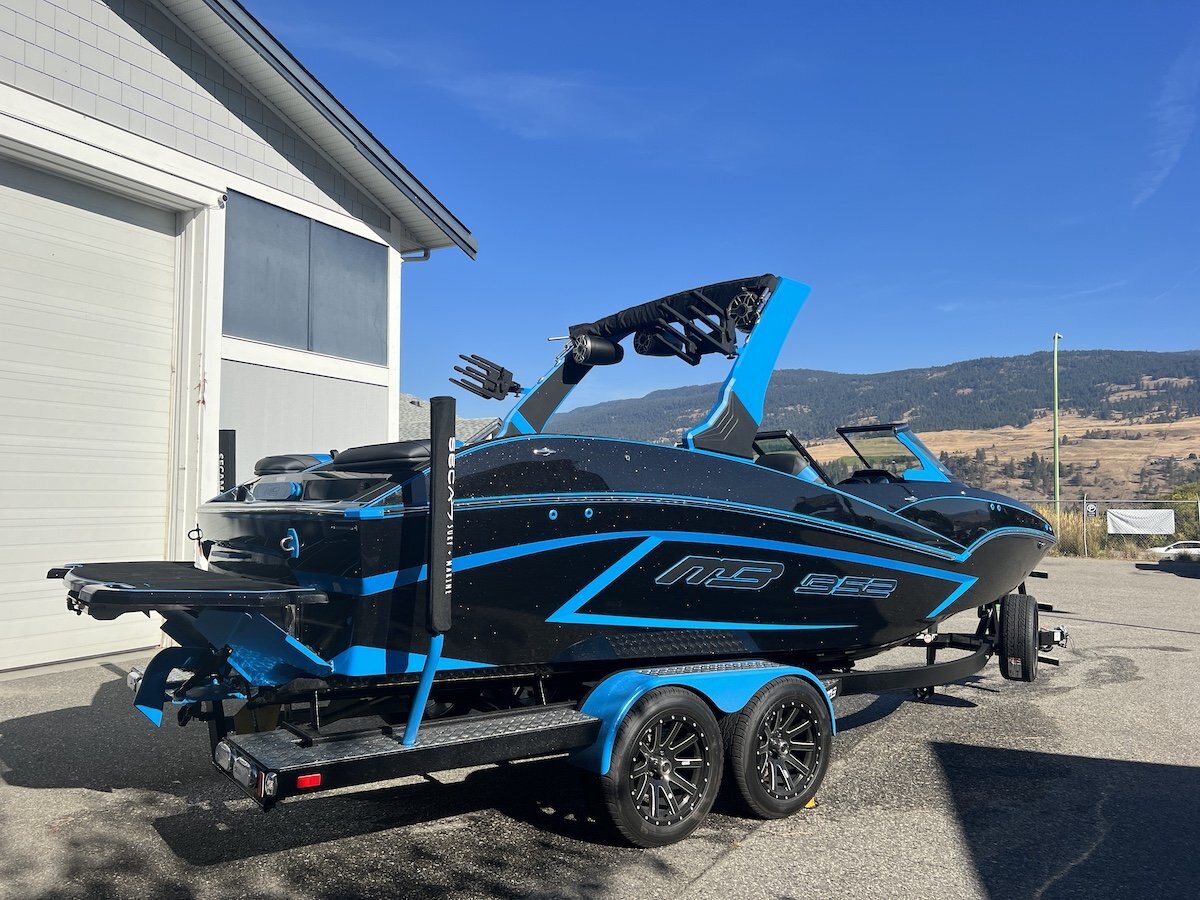 The MB Sports B52 23 Alpha delivers massive surf performance, premium comfort, and industry-leading ballast capacity in a sleek 23-foot platform. Designed for effortless wave creation and all-day comfort, the 23 Alpha combines MB’s proven deep-V hull with simple push-button operation and aggressive styling.