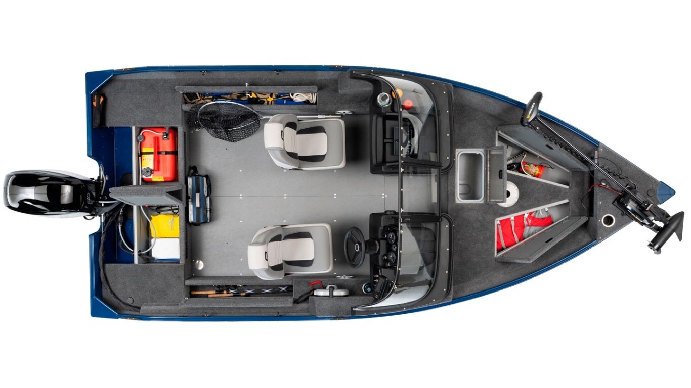 2026 Princecraft Holiday 162 WS MAX Without edition BlueStorage compartments under the bow platform and 61 L/16 U.S. gal. electric-filled aerated livewell