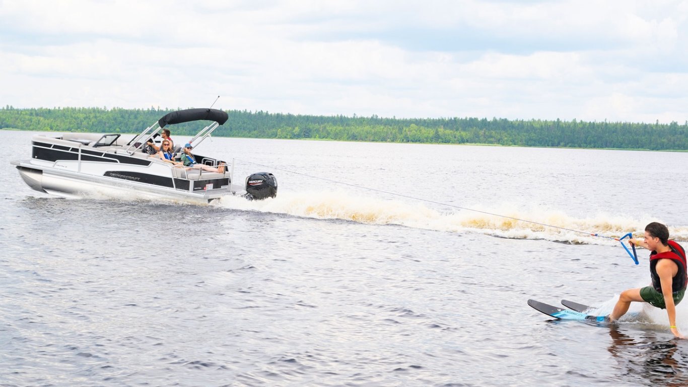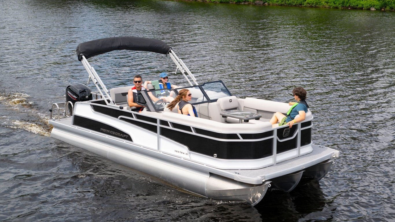 - Full camper enclosure includes stern bimini canvas and black anodized frame (black)