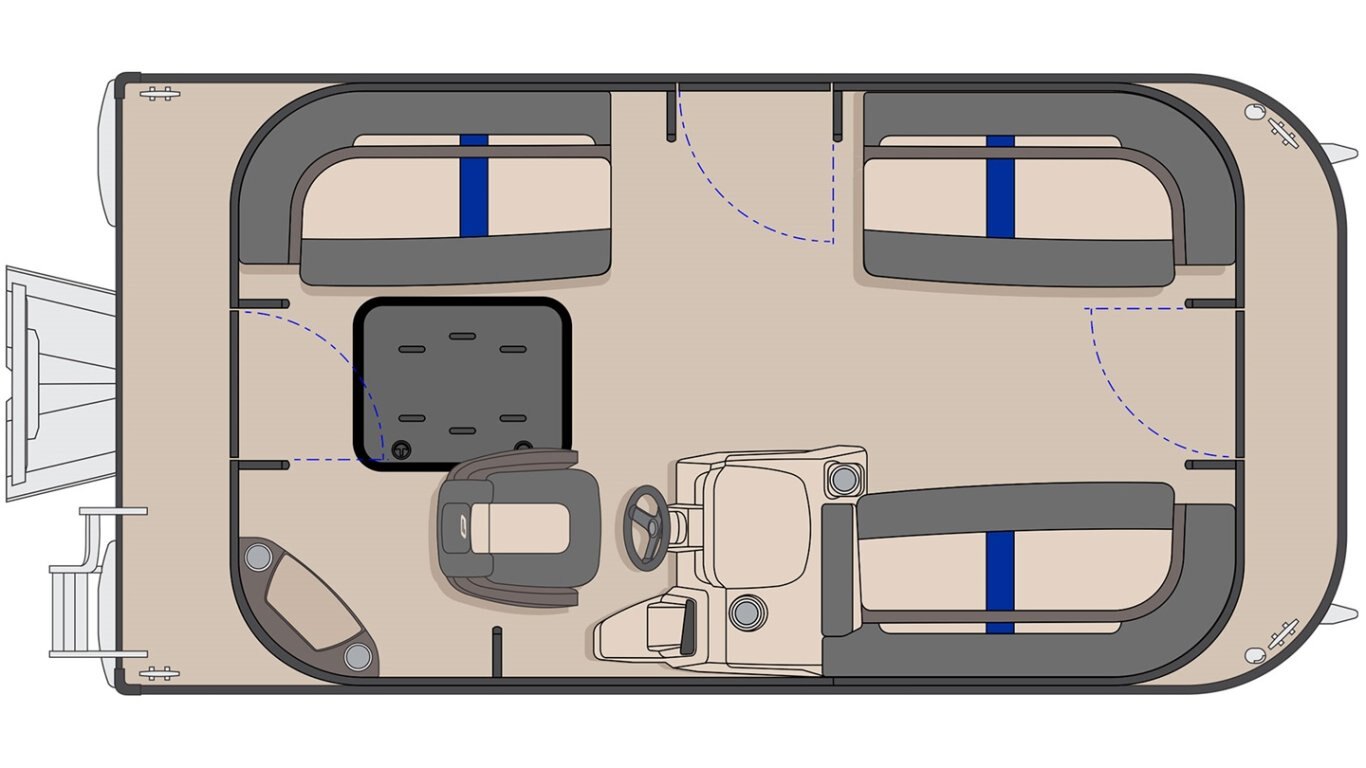 • Graphic package includes: Blue metallic stripe all around the pontoon