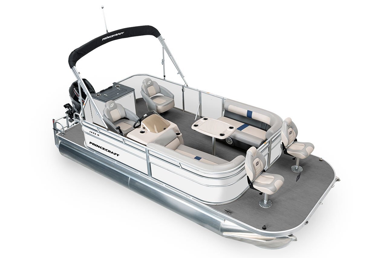 Black Edition includes: Black painted railing, black anodized deck bumper, darker upholstery, 2 deluxe captain's chairs, 3D Princecraft® black chrome logo on both sides and front door