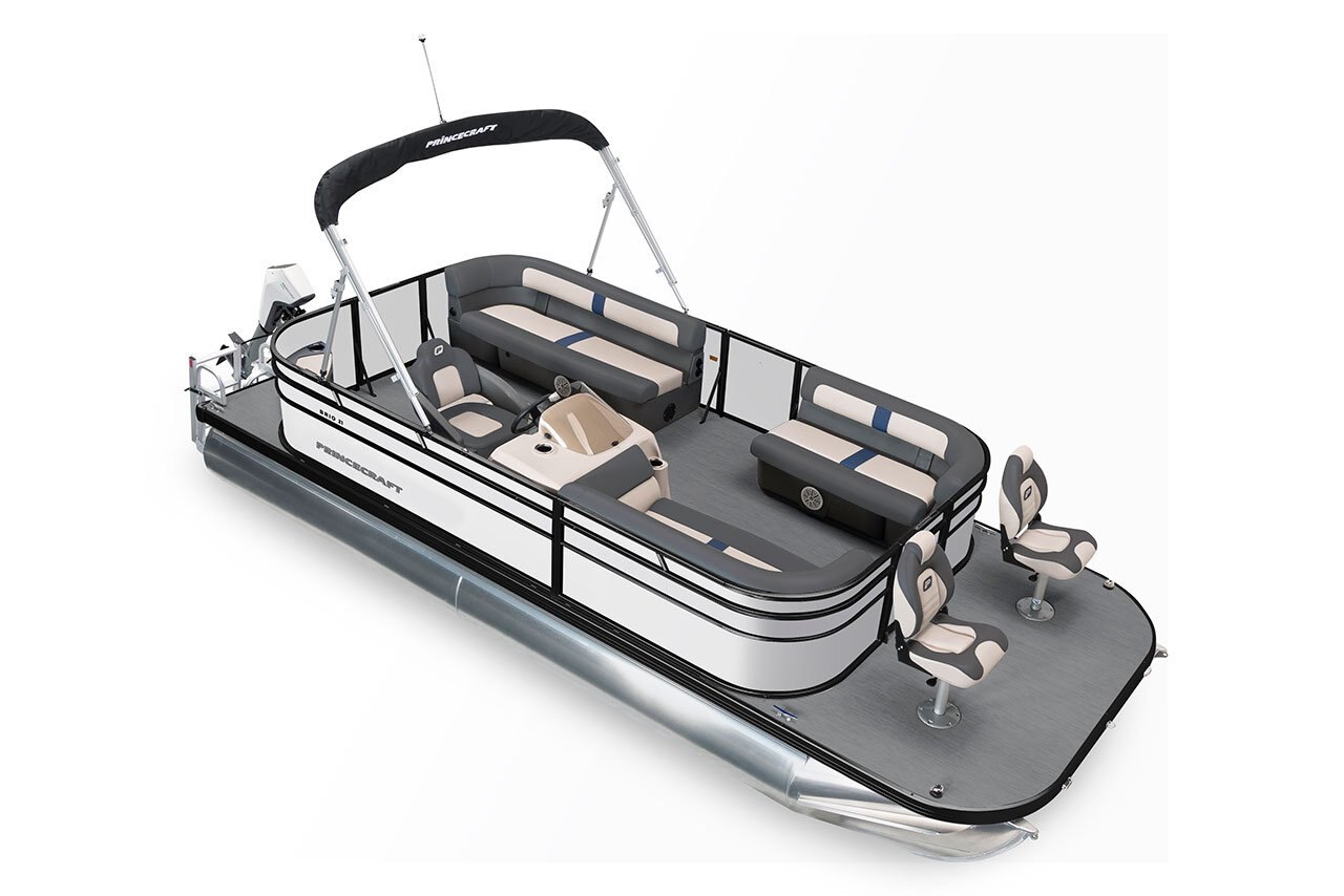 Black Edition includes: Black painted railing, black anodized deck bumper, darker upholstery, deluxe captain's chair, 3D Princecraft® black chrome logo on both sides and front door