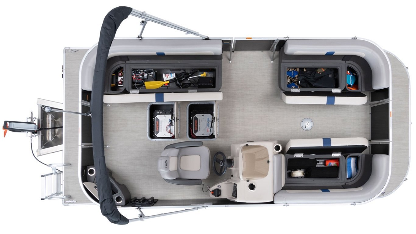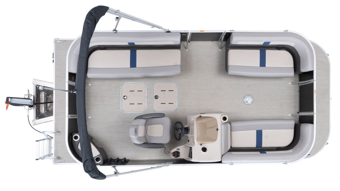 • Graphic package includes: Blue metallic stripe all around the pontoon