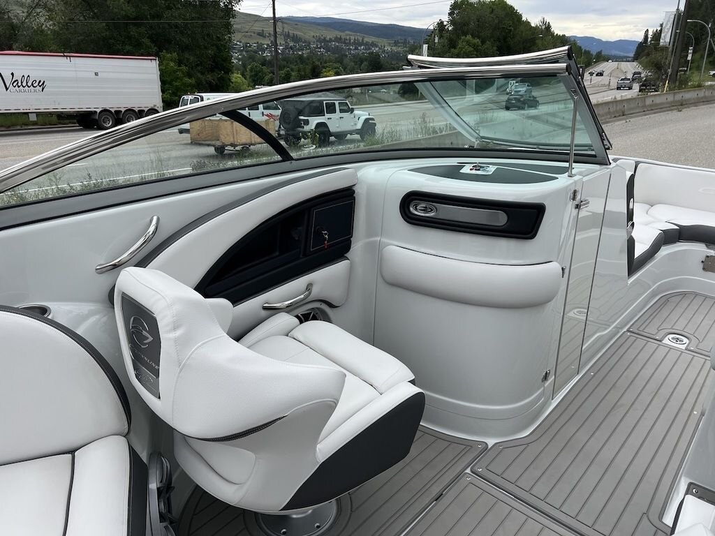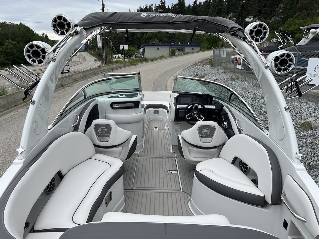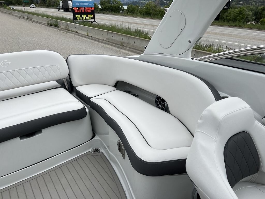 This model is the ideal boat for novice-to-pro surfers, skiers and wakeboarders. The Wake Worx surf tabs allow you to dial-in the perfect wave and Crownlines patented F.A.S.T. Tab hull design promises quick planing and turn-on-a dime maneuverability for an exciting ride. The E 255 SURF also features a deluxe aluminum tube tower with etched side panel, and suntop for great looks and functionality.