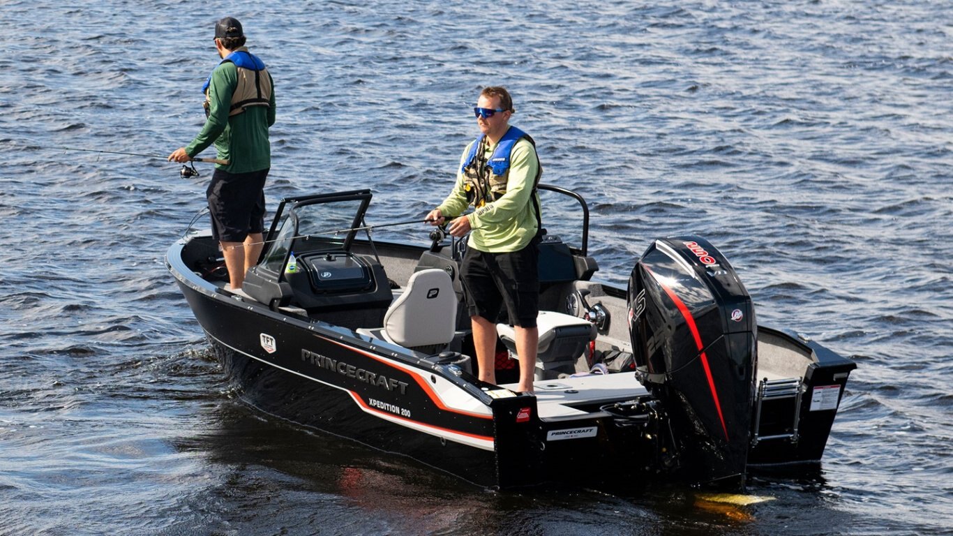 2026 Princecraft Xpedition 200 Without edition Black with stripeStern electric-filled aerated livewell (77 L/20 U.S. gal.)