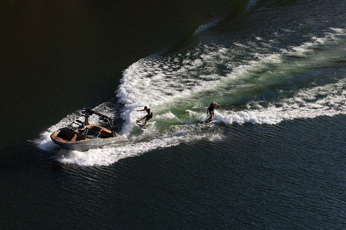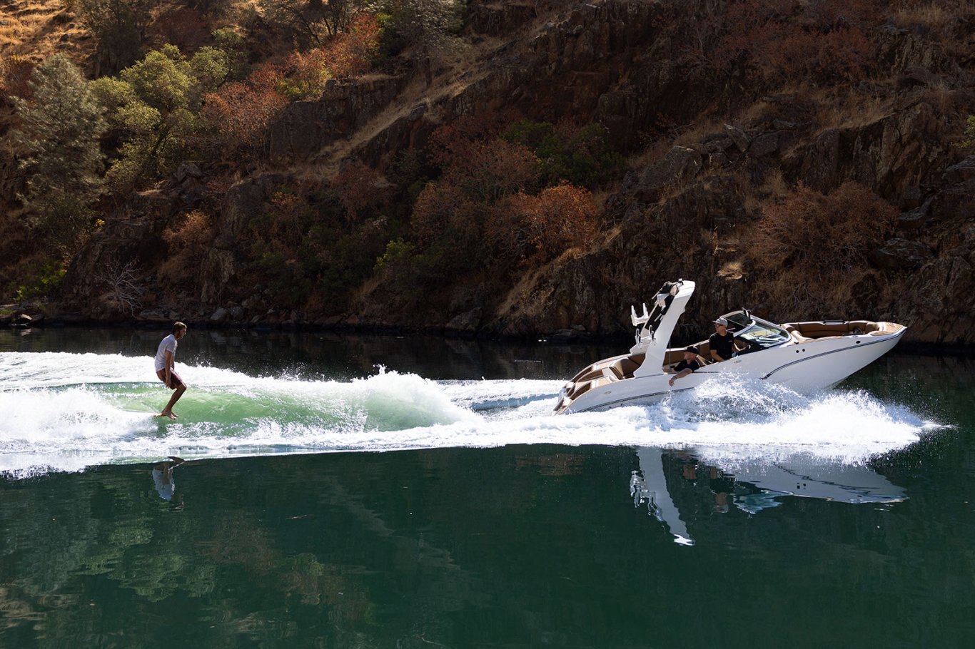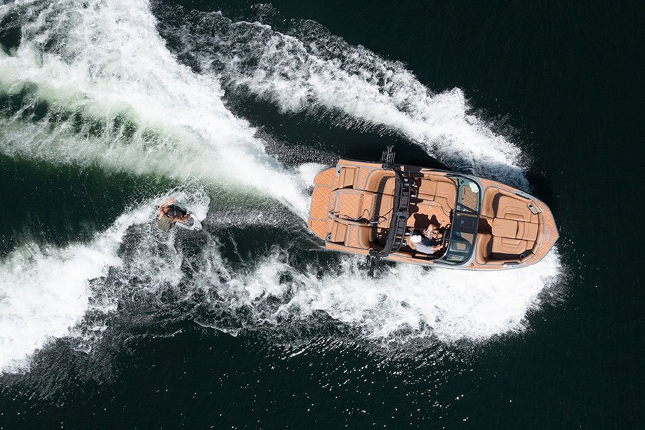 The MB Sports B52 Series was specifically designed in the early 90’s for Wakeboarding enthusiasts demanding more on the Water. Using our unique deep v hull, we’ve been able to crossover into the wakesurf world, creating one of the best waves for surfing. With our easy-to-use surf system and 30-year pedigree on the water, you’ll be spending less time tweaking and “dialing” and more time surfing #thewave.