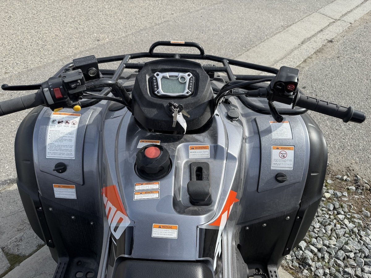 All conveniently set from the digital display, the Tri-Mode Speed Sensing Electronic Power Steering (TMSS EPS) not only senses the ATV speed for varying levels of assist, the rider can select no assist, minimum assist and maximum assist steering.