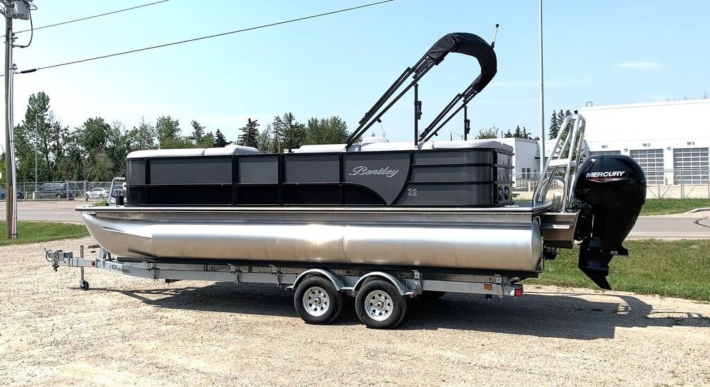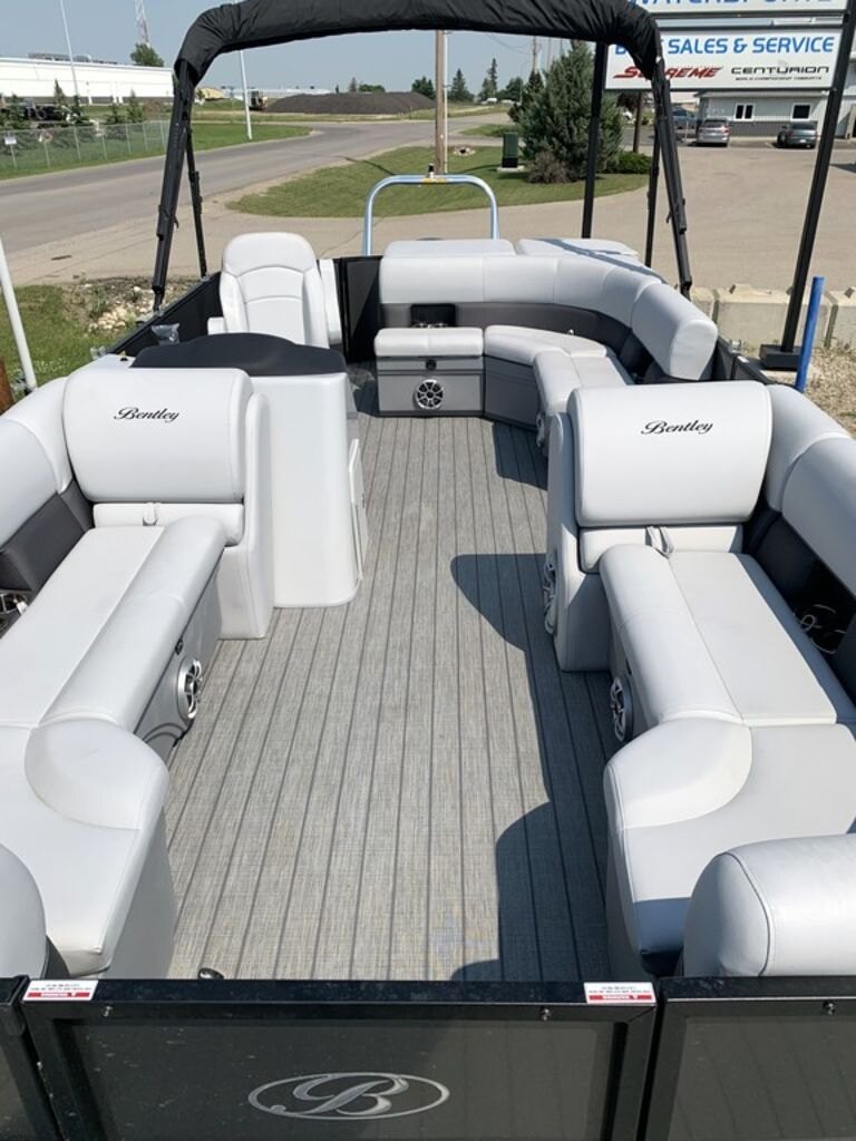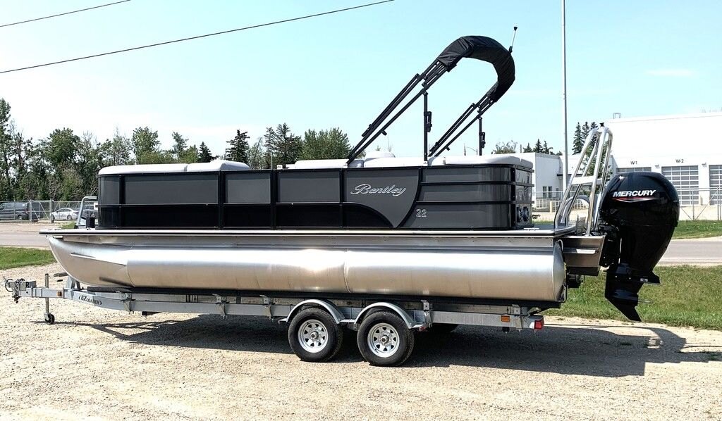 Discover the lake with one of these Bentley Legacy Series pontoons! You can be sure they will last a lifetime with construction features like the all welded aluminum transom, the 5/8" solid keel, and the 25" diameter tubes with a lifetime warranty. The .190 hat channel crossmembers are at the motor mount area and the powder coated railing will keep you from falling off the pontoon. There is a 10' bimini with quick disconnect so you can stay protected from the sun when it's too intense at times. You can even add optional features like a changing room to make your trips easier. Come find your favorite one today!