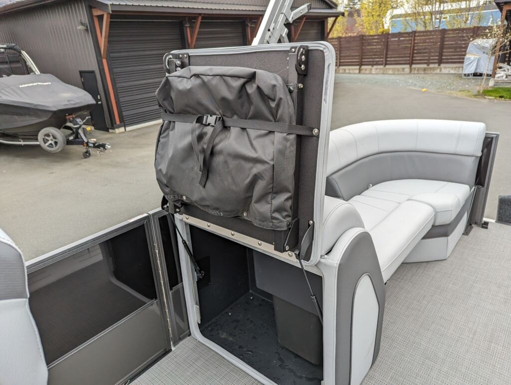 This unit is equipped with a double bimini (10' & 8') to cover the entire playpen area, keeping you and your companions cool and protected.