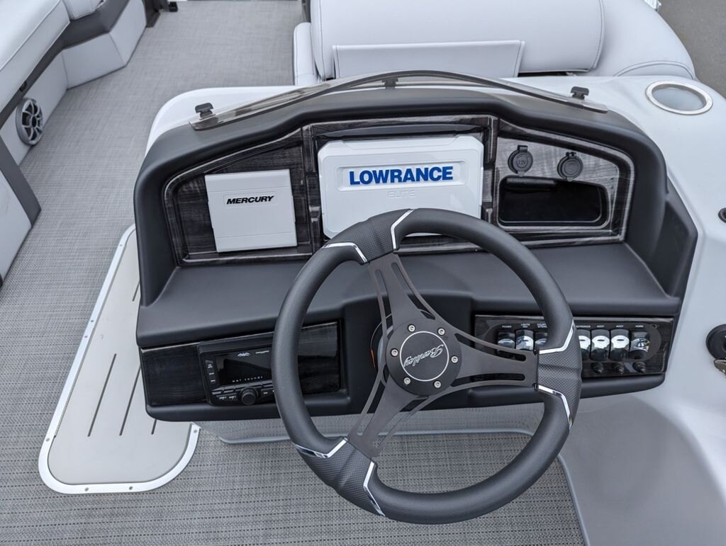 This model offers a sleek design, a wide range of amenities, and comfortable seating. With a center walk-thru floor plan and dual captain chairs, this boat is perfect for those seeking a smooth ride. Additionally, the extended rear deck ensures that you will have ample space to relax and soak up the sun. Experience the ultimate in style and comfort as you cruise on the Elite Admiral.