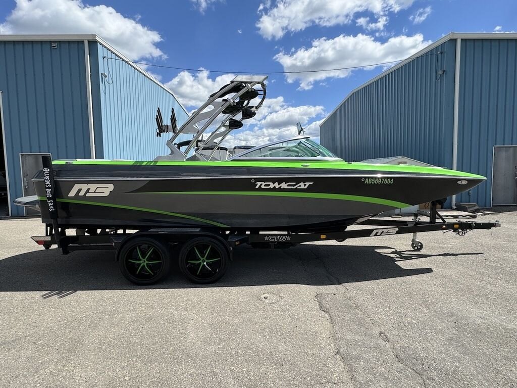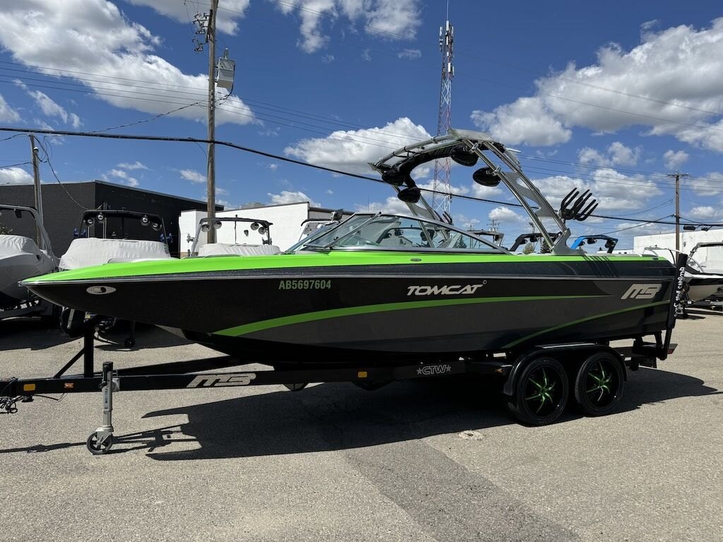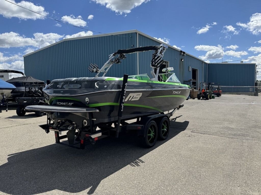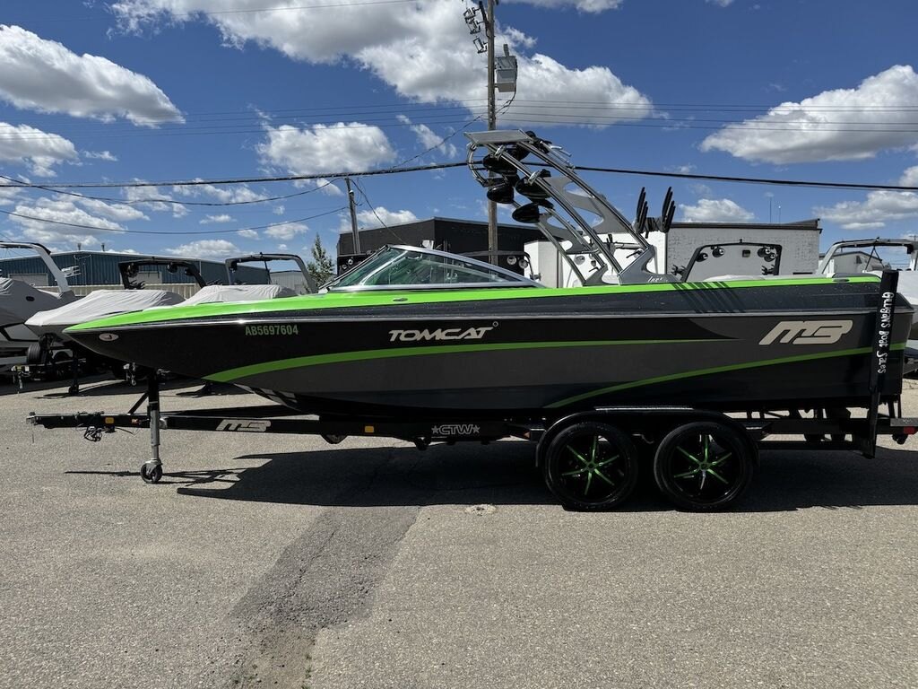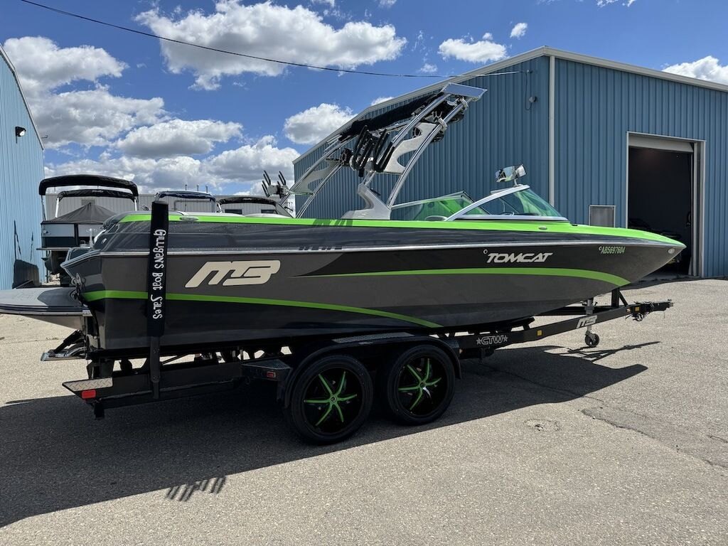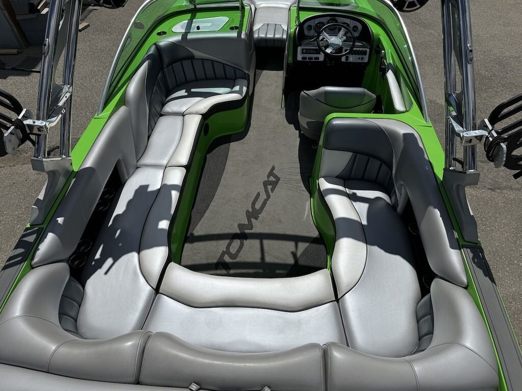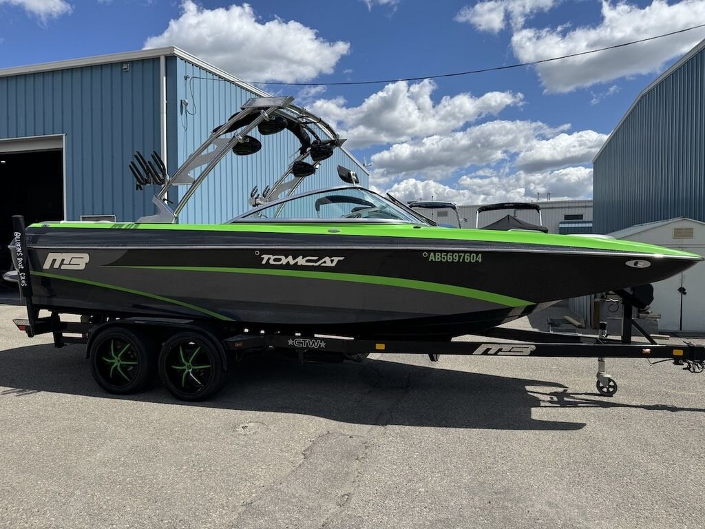 Dominate the water in the F24 Tomcat from the artisans at MB Sports. Big, beefy wake and lots of room are yours in this boat. And with the pickle-fork bow design, up to four pleasure-seekers can fit comfortably in the spacious playpit. The quick-to-plane hull design gets you up and riding the famously clean wake faster than ever. Options include Indmar 6.2L Cadillac LSA Supercharged Engine, 4 Wetsounds Tower Speakers, 2 10" subwoofers, 6 Wetsounds In cabin Speakers, Dual batteries with isolation switch, Cabin heater, Zero Off GPS Speed Control, Bimini Top, One Piece Tower Up Mooring Cover, Removable carpet, Custom Tandem Axle trailer with folding tongue and new tires.