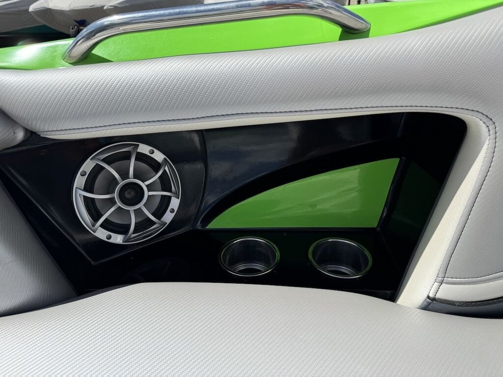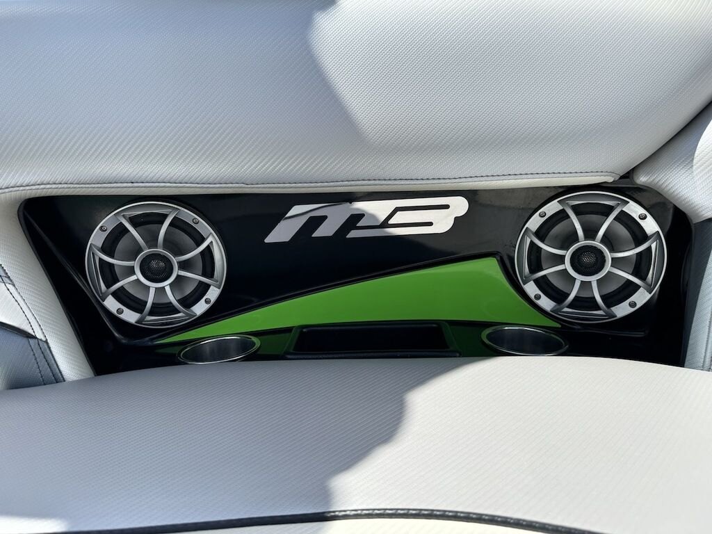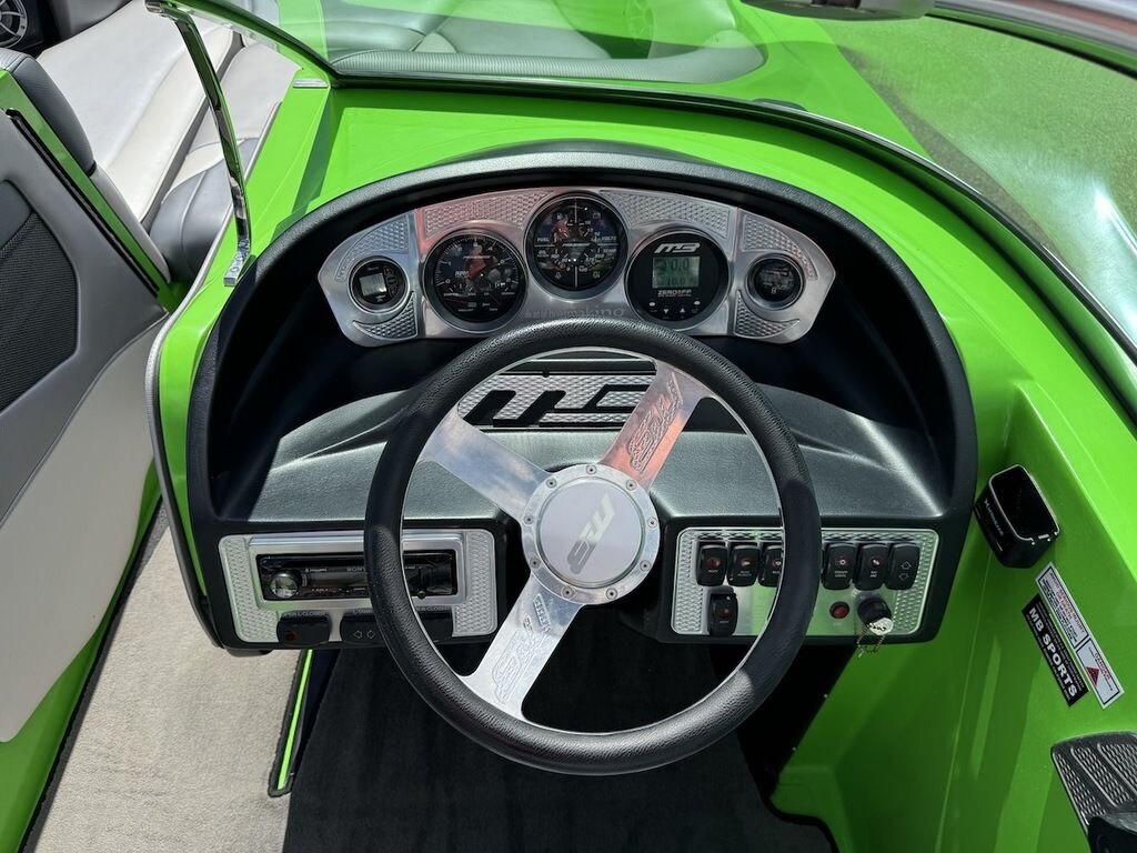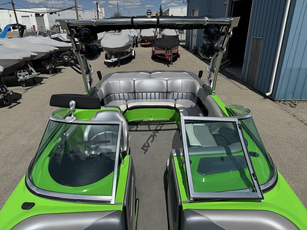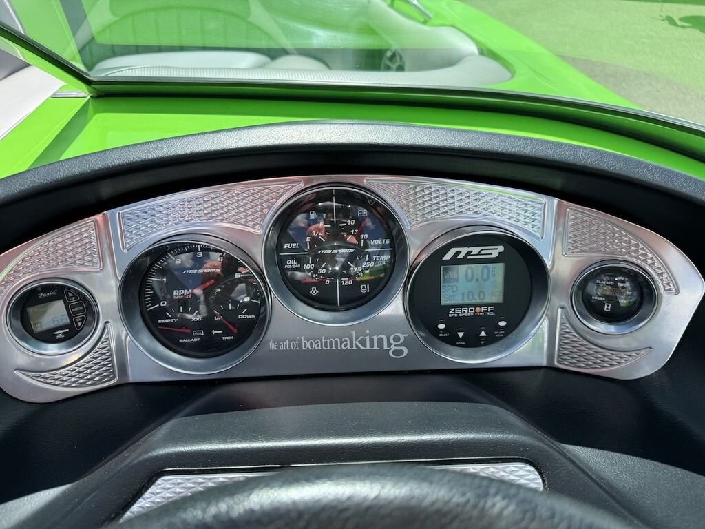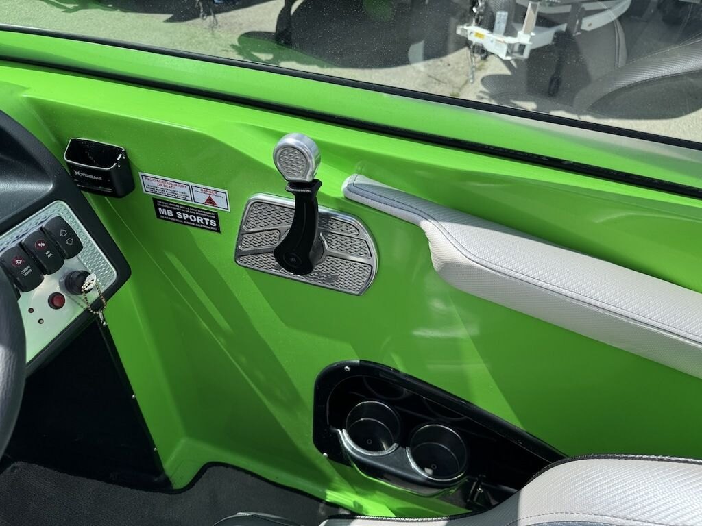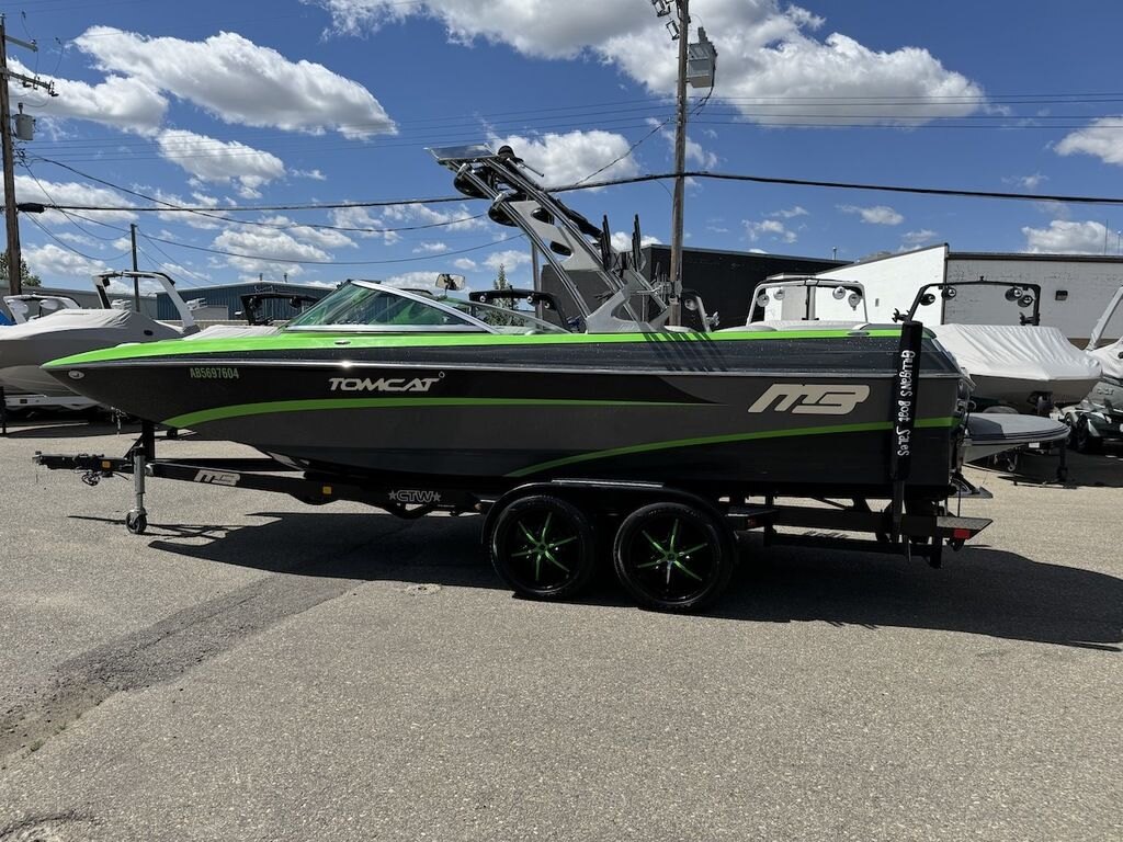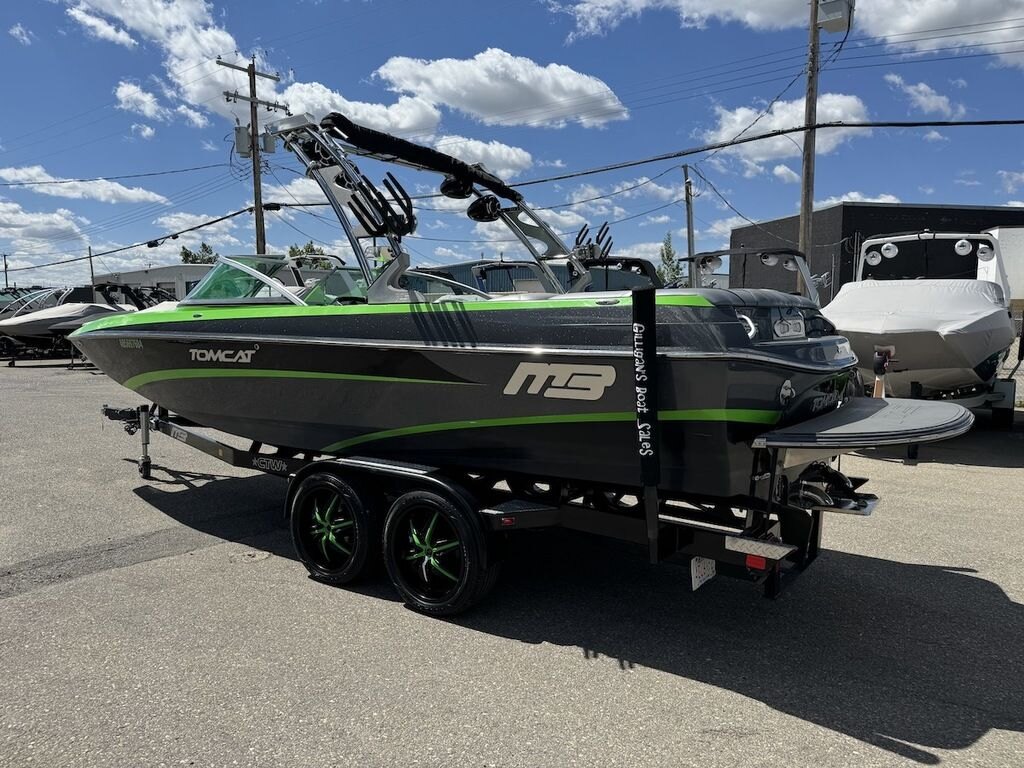 Dominate the water in the F24 Tomcat from the artisans at MB Sports. Big, beefy wake and lots of room are yours in this boat. And with the pickle-fork bow design, up to four pleasure-seekers can fit comfortably in the spacious playpit. The quick-to-plane hull design gets you up and riding the famously clean wake faster than ever. Options include Indmar 6.2L Cadillac LSA Supercharged Engine, 4 Wetsounds Tower Speakers, 2 10" subwoofers, 6 Wetsounds In cabin Speakers, Dual batteries with isolation switch, Cabin heater, Zero Off GPS Speed Control, Bimini Top, One Piece Tower Up Mooring Cover, Removable carpet, Custom Tandem Axle trailer with folding tongue and new tires.
