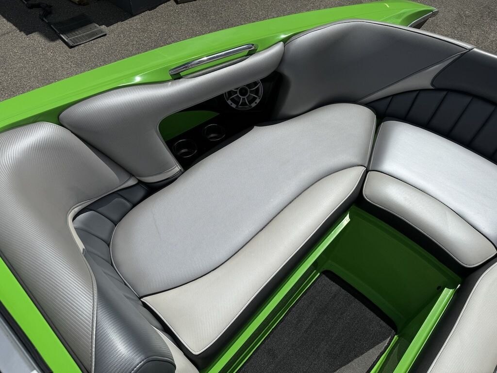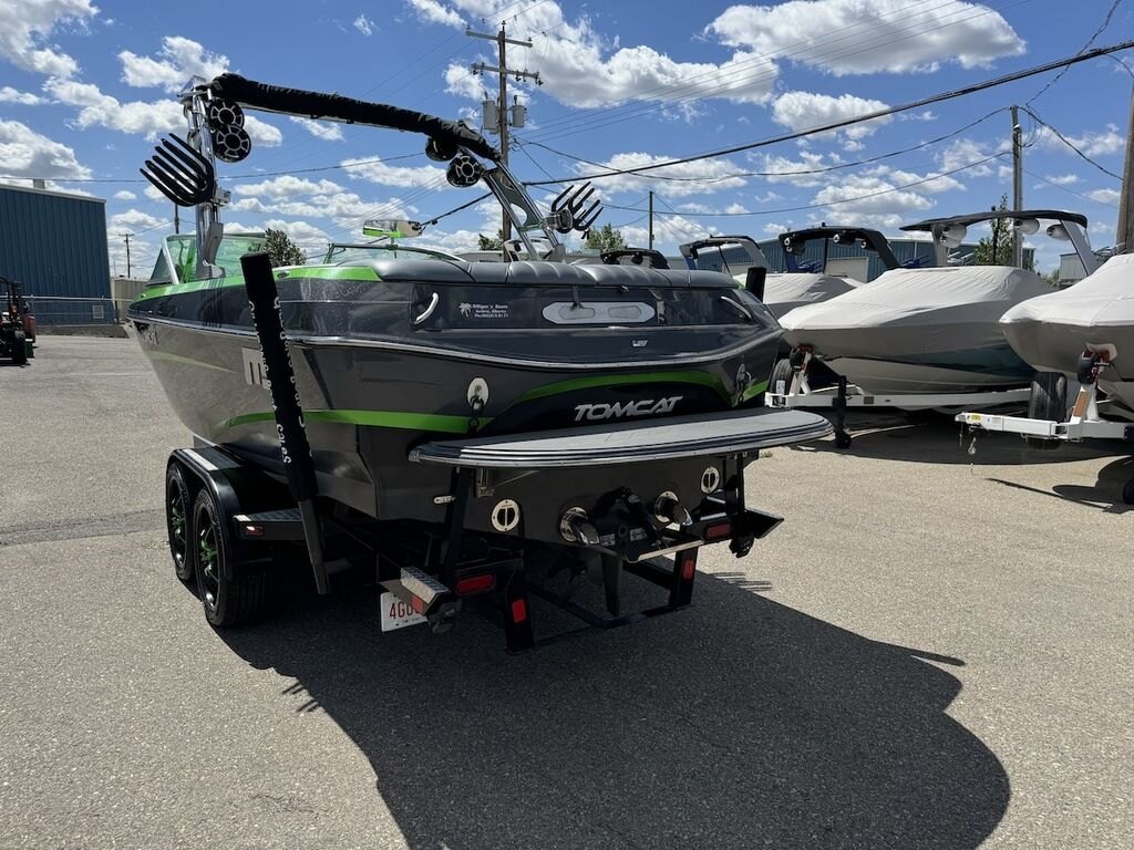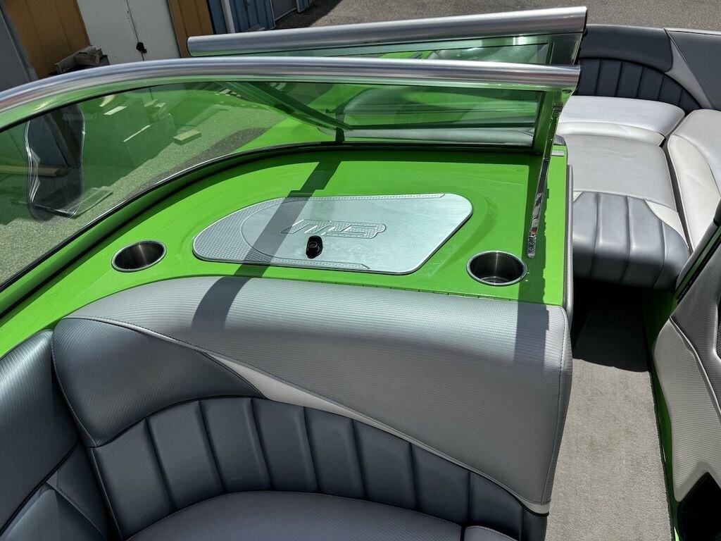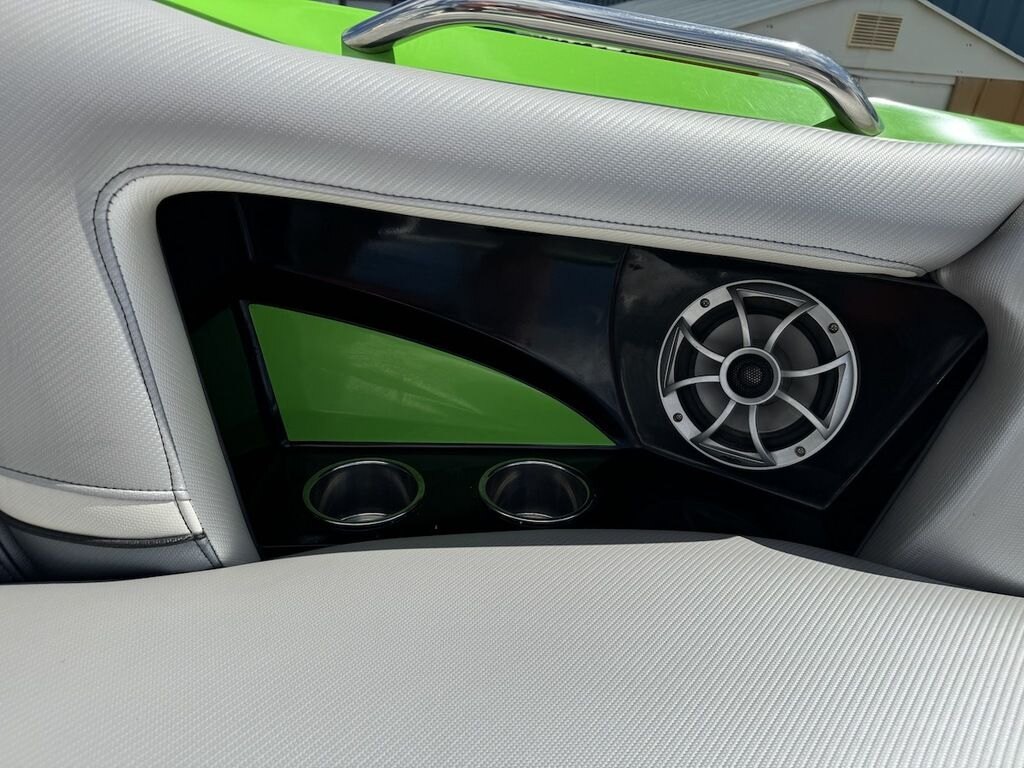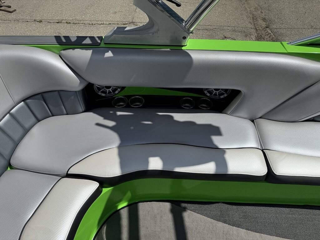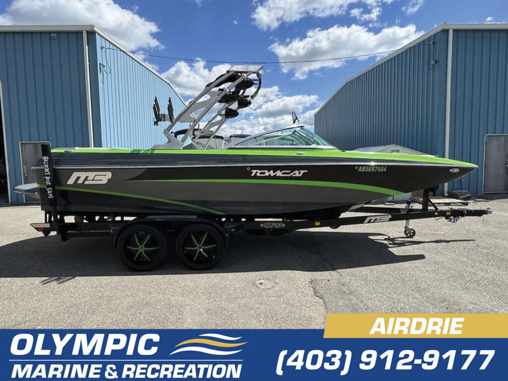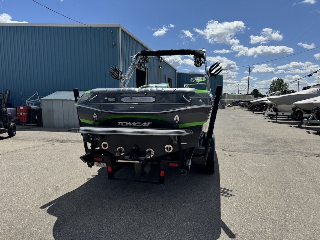 Dominate the water in the F24 Tomcat from the artisans at MB Sports. Big, beefy wake and lots of room are yours in this boat. And with the pickle-fork bow design, up to four pleasure-seekers can fit comfortably in the spacious playpit. The quick-to-plane hull design gets you up and riding the famously clean wake faster than ever. Options include Indmar 6.2L Cadillac LSA Supercharged Engine, 4 Wetsounds Tower Speakers, 2 10" subwoofers, 6 Wetsounds In cabin Speakers, Dual batteries with isolation switch, Cabin heater, Zero Off GPS Speed Control, Bimini Top, One Piece Tower Up Mooring Cover, Removable carpet, Custom Tandem Axle trailer with folding tongue and new tires.