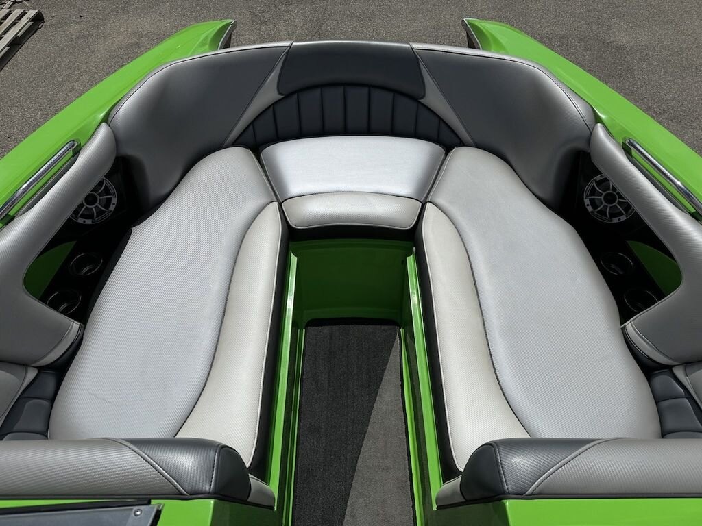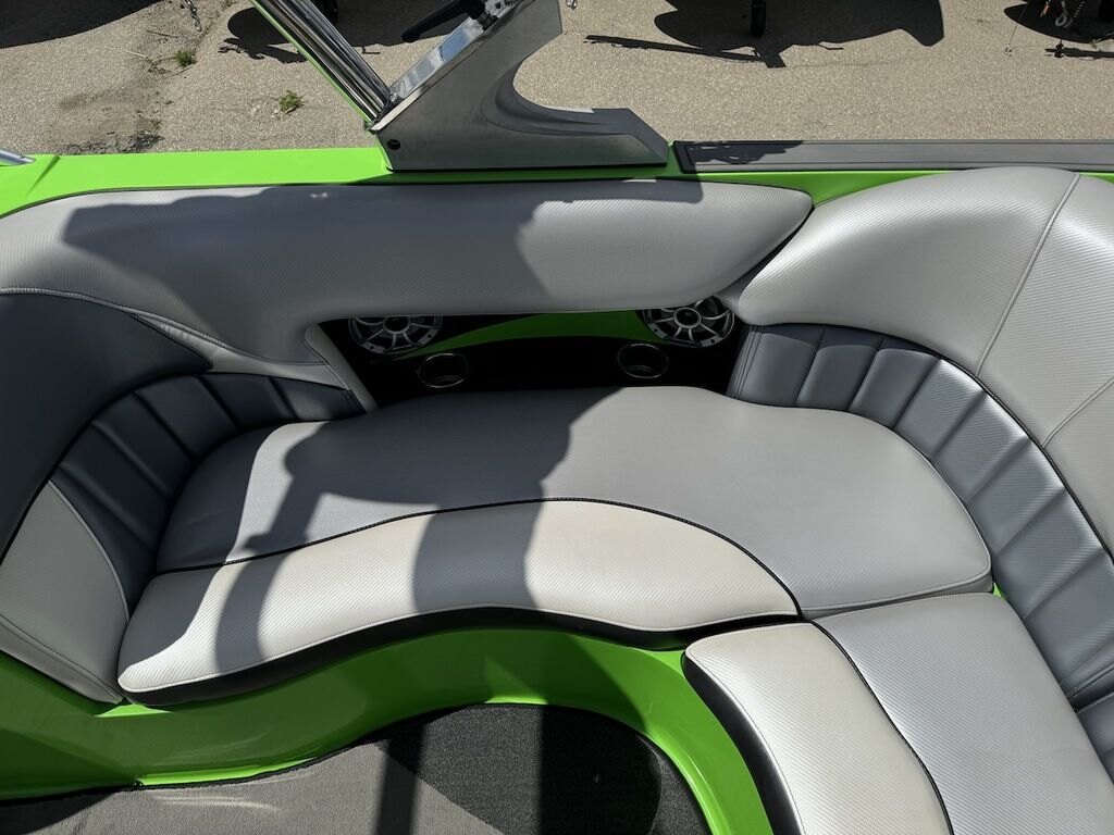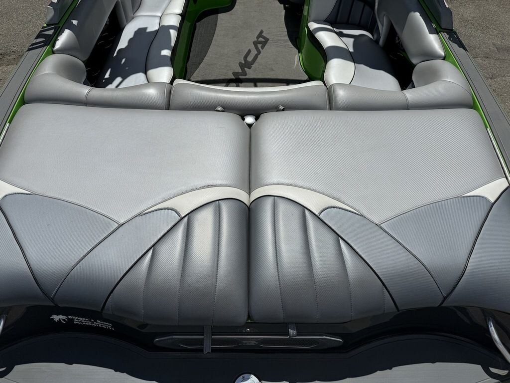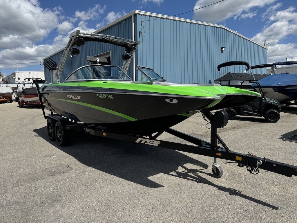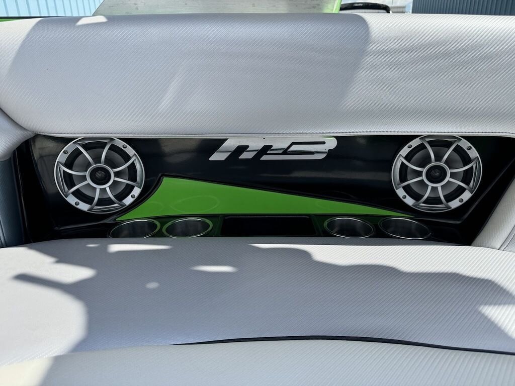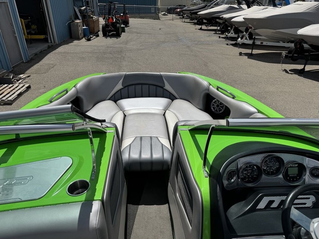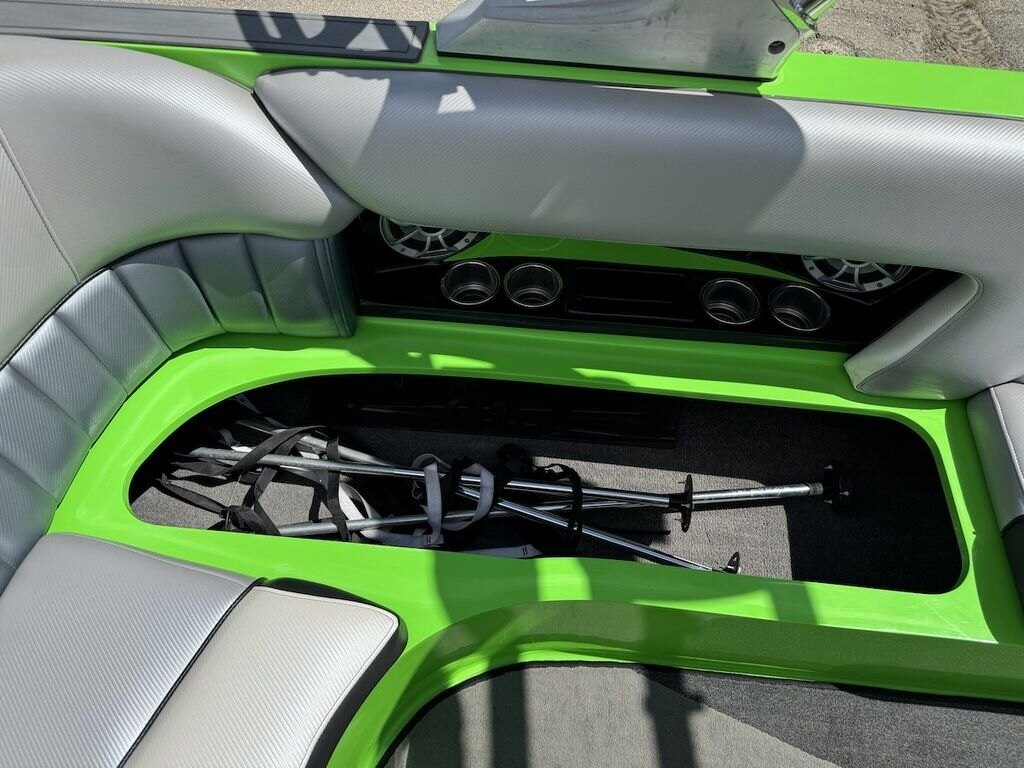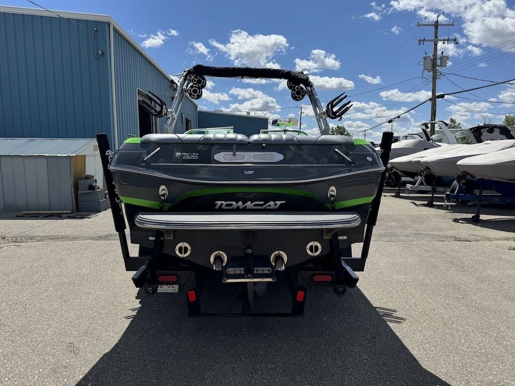 Dominate the water in the F24 Tomcat from the artisans at MB Sports. Big, beefy wake and lots of room are yours in this boat. And with the pickle-fork bow design, up to four pleasure-seekers can fit comfortably in the spacious playpit. The quick-to-plane hull design gets you up and riding the famously clean wake faster than ever. Options include Indmar 6.2L Cadillac LSA Supercharged Engine, 4 Wetsounds Tower Speakers, 2 10" subwoofers, 6 Wetsounds In cabin Speakers, Dual batteries with isolation switch, Cabin heater, Zero Off GPS Speed Control, Bimini Top, One Piece Tower Up Mooring Cover, Removable carpet, Custom Tandem Axle trailer with folding tongue and new tires.