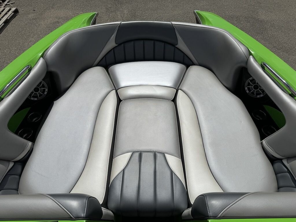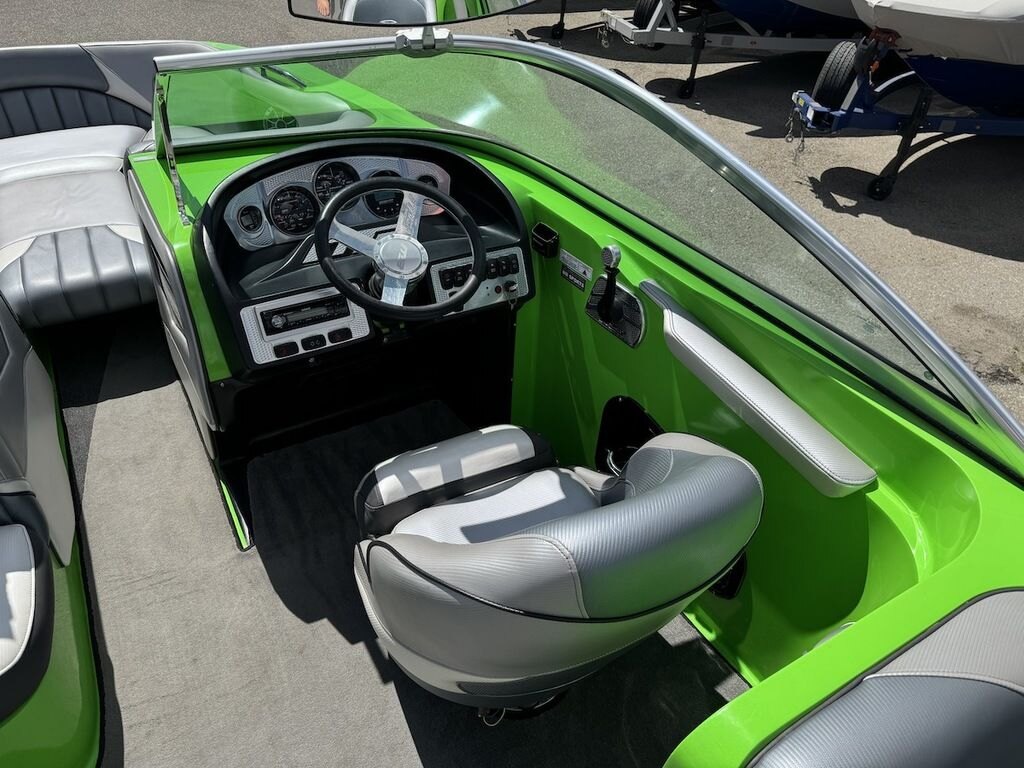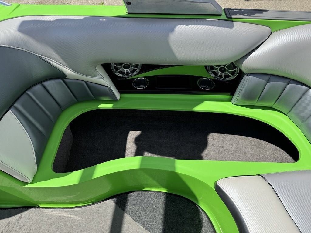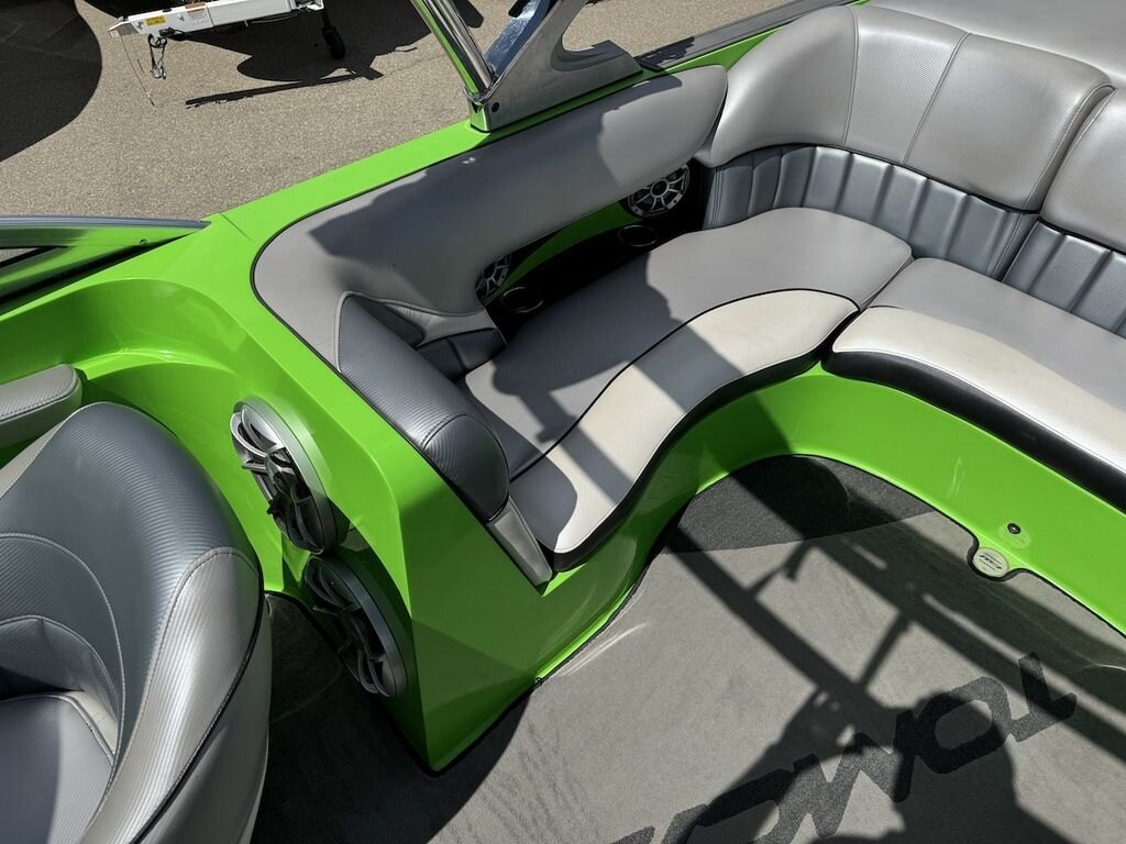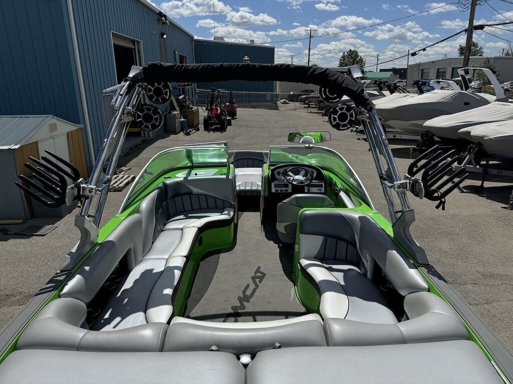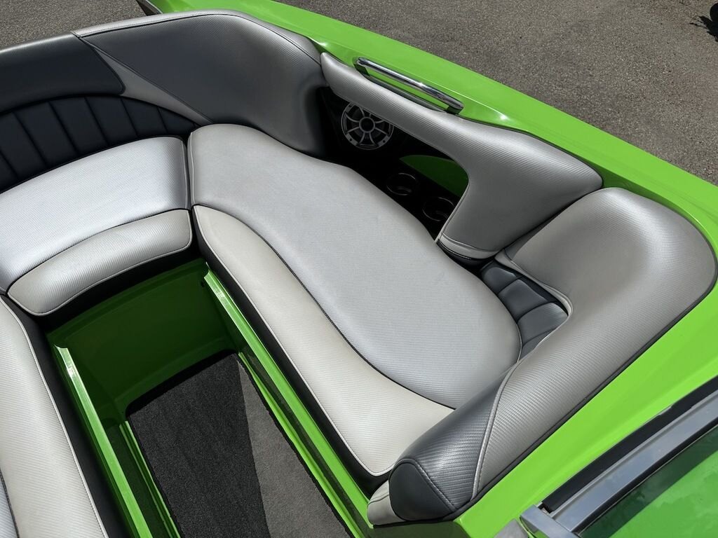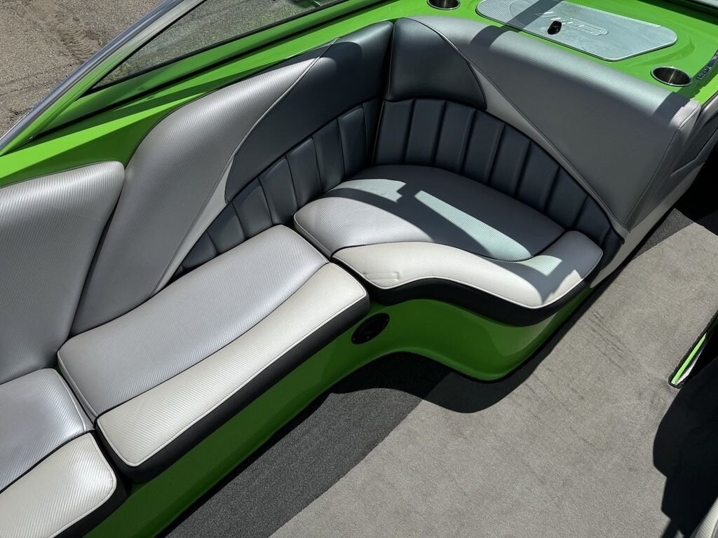 Dominate the water in the F24 Tomcat from the artisans at MB Sports. Big, beefy wake and lots of room are yours in this boat. And with the pickle-fork bow design, up to four pleasure-seekers can fit comfortably in the spacious playpit. The quick-to-plane hull design gets you up and riding the famously clean wake faster than ever. Options include Indmar 6.2L Cadillac LSA Supercharged Engine, 4 Wetsounds Tower Speakers, 2 10" subwoofers, 6 Wetsounds In cabin Speakers, Dual batteries with isolation switch, Cabin heater, Zero Off GPS Speed Control, Bimini Top, One Piece Tower Up Mooring Cover, Removable carpet, Custom Tandem Axle trailer with folding tongue and new tires.
