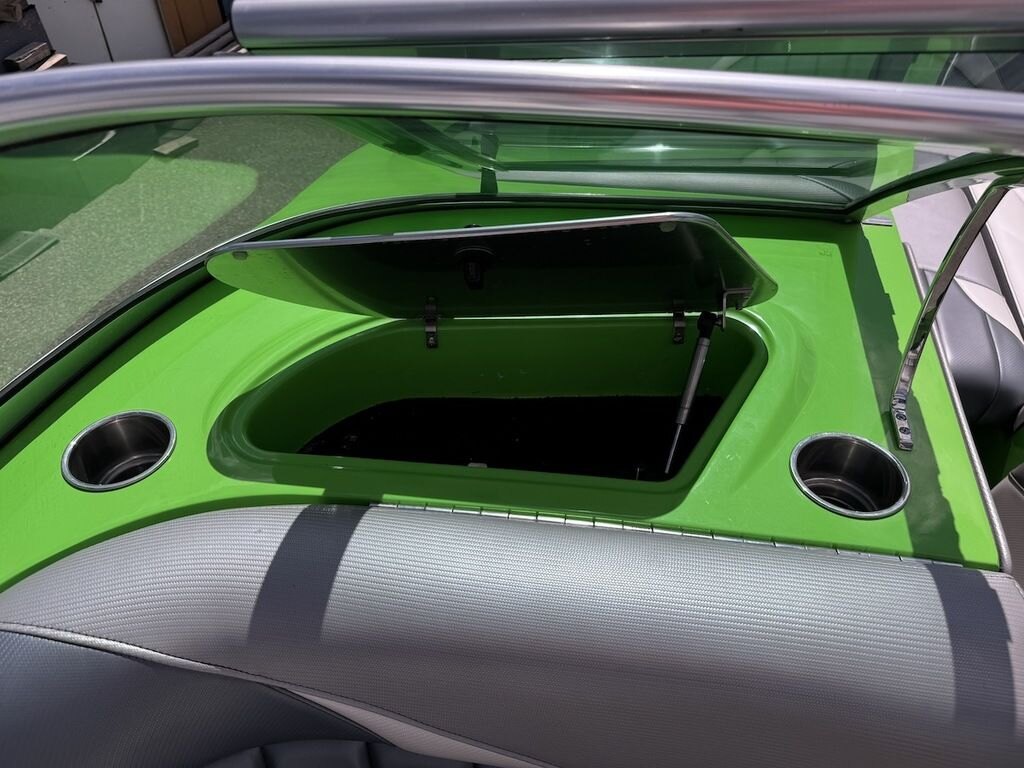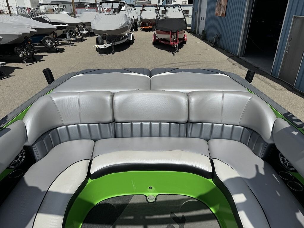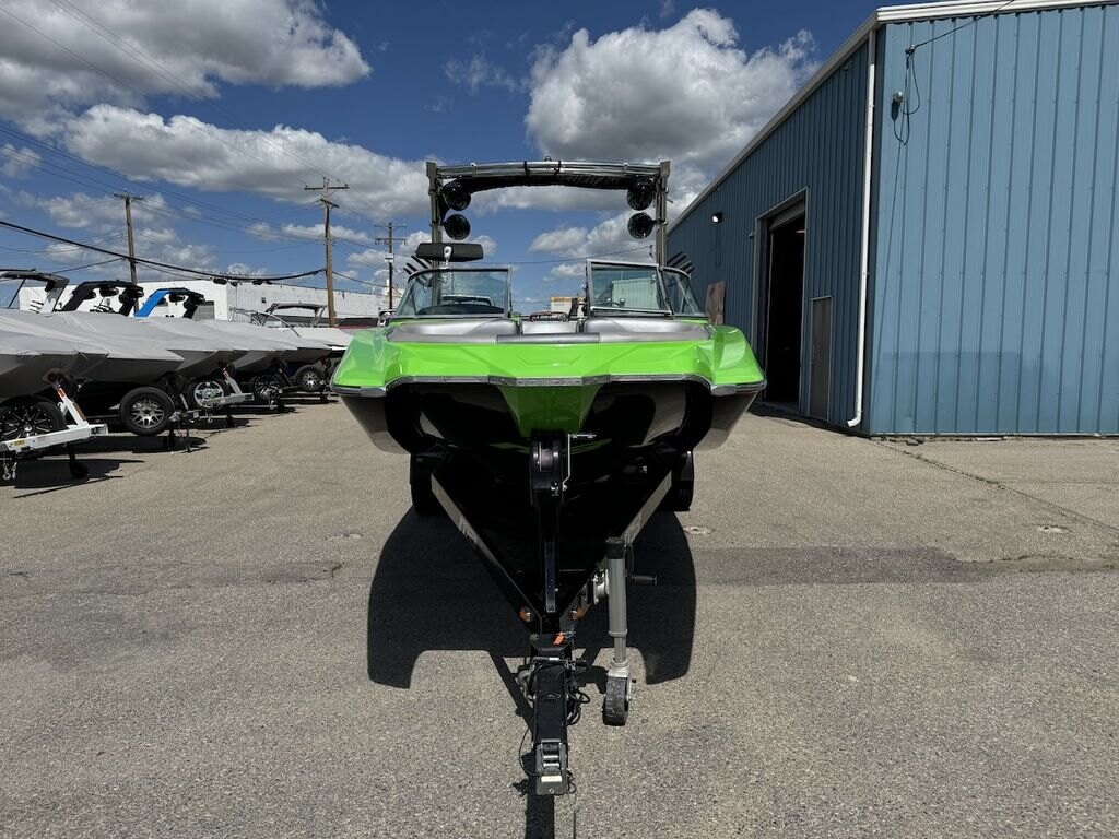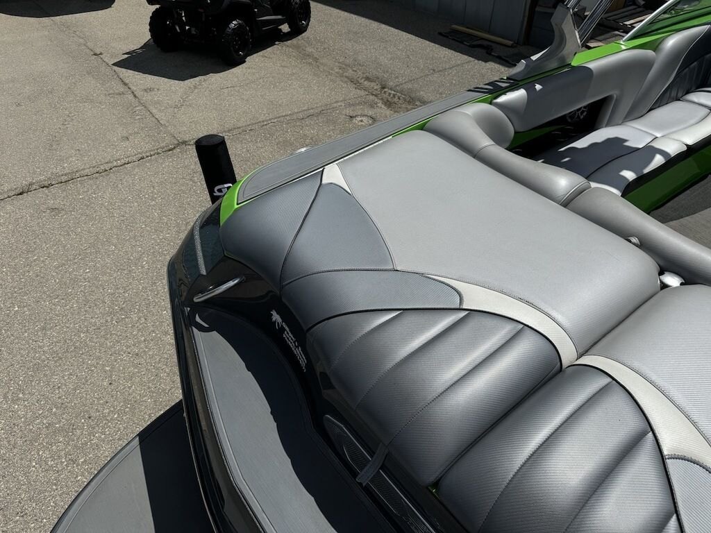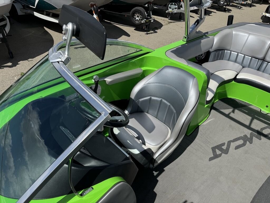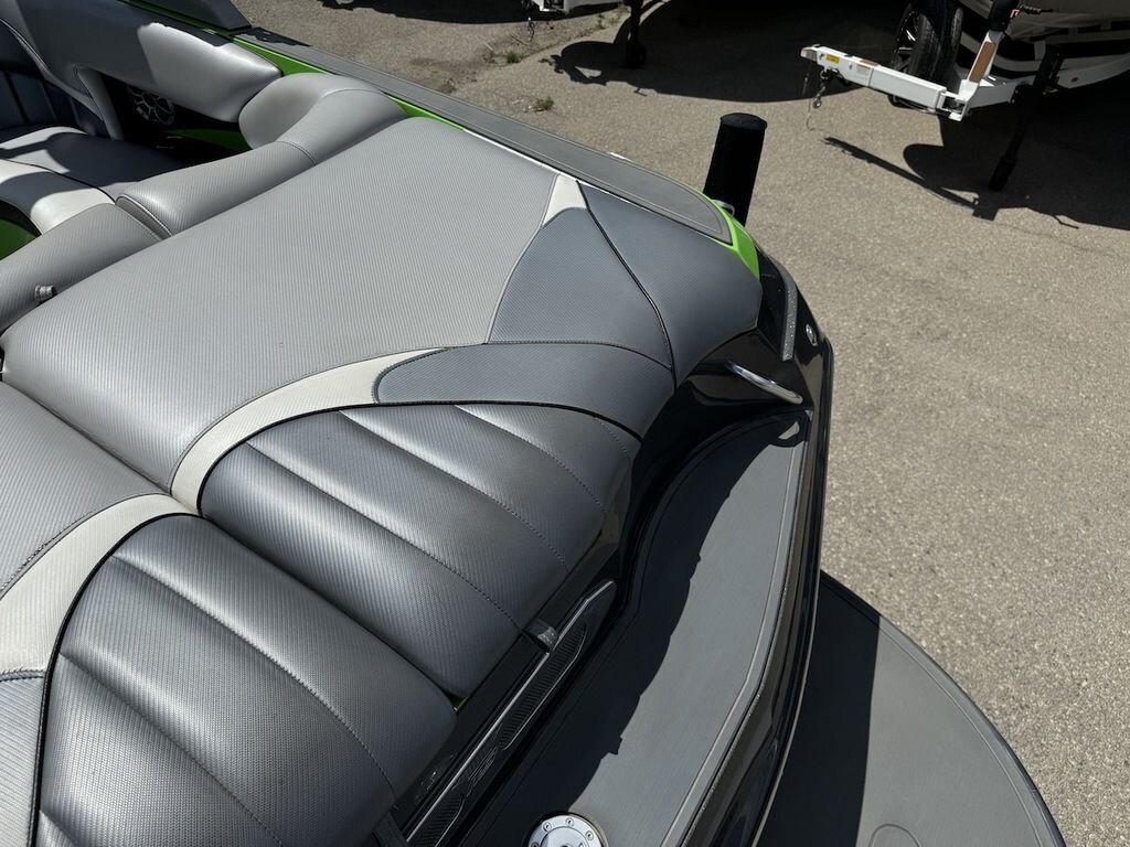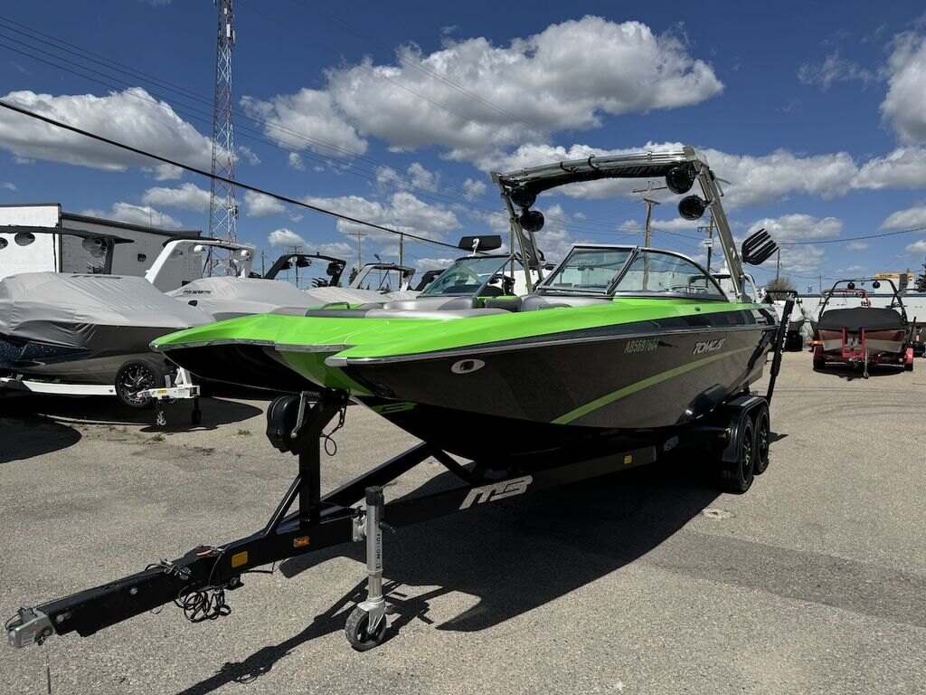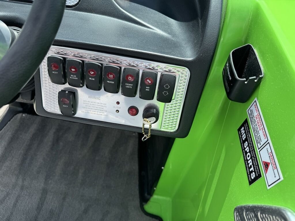 Dominate the water in the F24 Tomcat from the artisans at MB Sports. Big, beefy wake and lots of room are yours in this boat. And with the pickle-fork bow design, up to four pleasure-seekers can fit comfortably in the spacious playpit. The quick-to-plane hull design gets you up and riding the famously clean wake faster than ever. Options include Indmar 6.2L Cadillac LSA Supercharged Engine, 4 Wetsounds Tower Speakers, 2 10" subwoofers, 6 Wetsounds In cabin Speakers, Dual batteries with isolation switch, Cabin heater, Zero Off GPS Speed Control, Bimini Top, One Piece Tower Up Mooring Cover, Removable carpet, Custom Tandem Axle trailer with folding tongue and new tires.