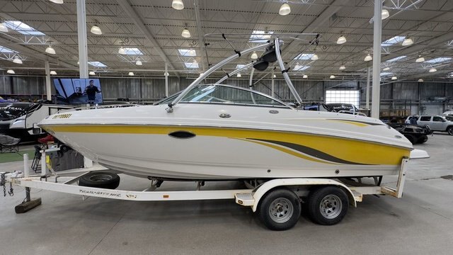 The 2004 Chaparral 230 SSi is a versatile and stylish bowrider, perfect for both leisurely cruises and active watersports. With a length of 23 feet and a beam of 8.5 feet, it offers ample space and stability on the water. The boat is powered by a MerCruiser 350 MAG MPI engine, delivering 300 horsepower, ensuring reliable performance for various activities. Key features of the 230 SSi include comfortable contoured bow seating with fold-up armrests, a full sunpad with walk-through, and snap-in carpet throughout the cockpit. The boat\'s design incorporates Chaparral\'s patented F.A.S.T. Tab hull, enhancing performance and fuel efficiency. For added convenience, it comes equipped with a bimini top, stainless steel hardware, and a tandem axle galvanized trailer. Whether you\'re seeking relaxation or adventure, the 2004 Chaparral 230 SSi offers a blend of comfort, performance, and style for all your boating needs.