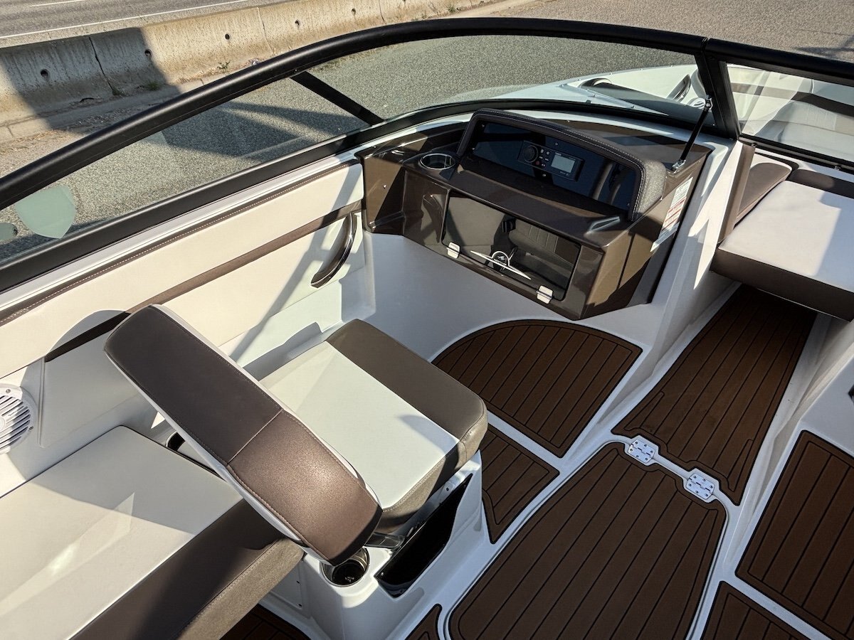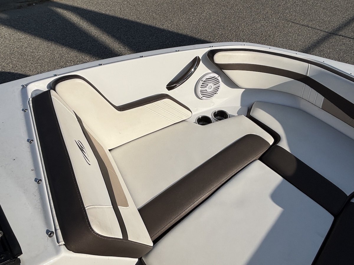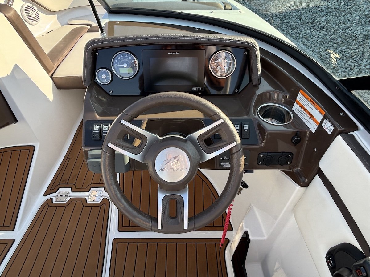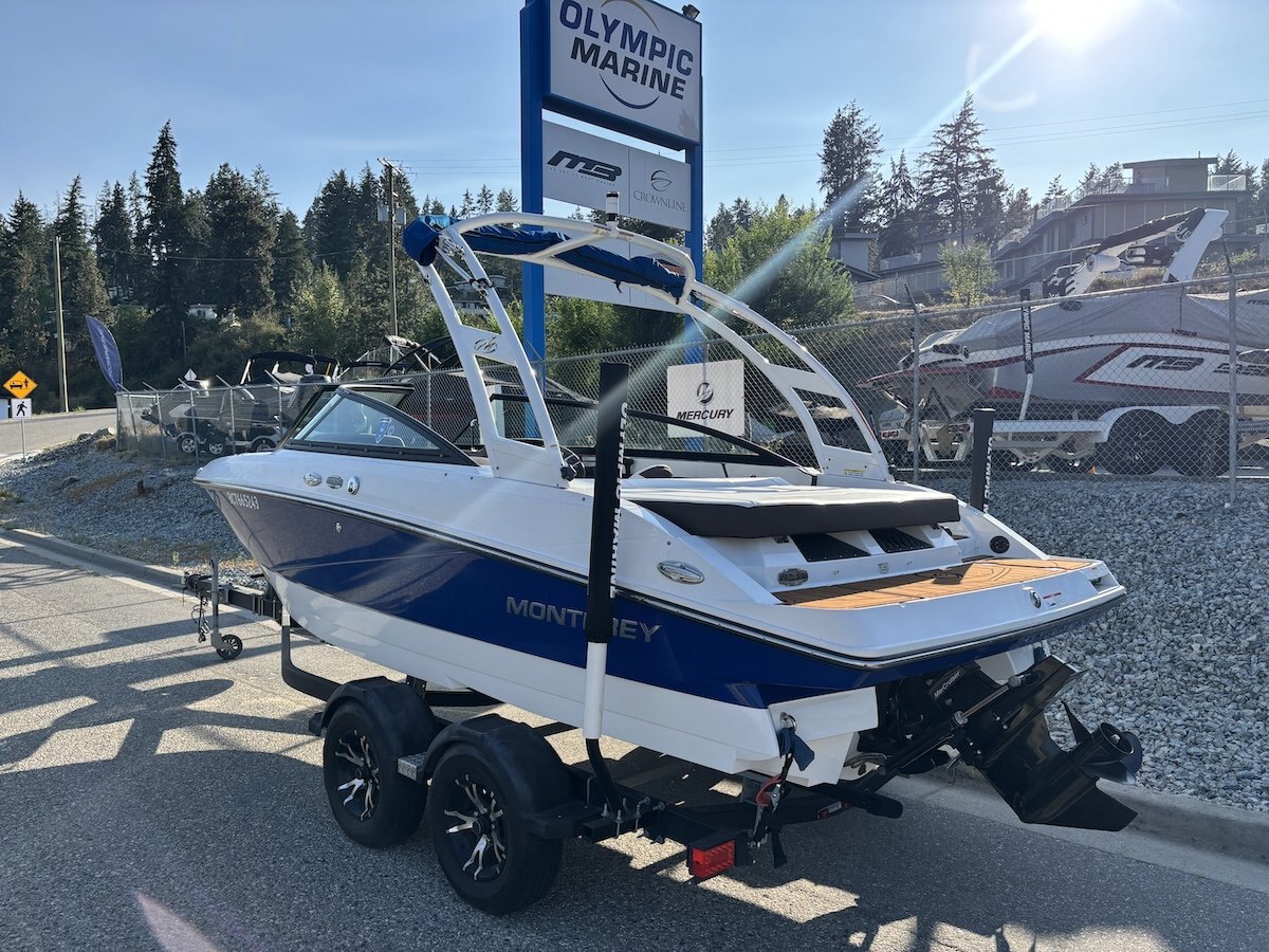 The power-packed M-20 boast sleek lines and fluid curves, and is loaded with amenities waiting to be embraced by both new and experienced boaters alike! Standard features include Monterey Boats patented Air Assist Chine, multiple stainless steel drink holders, an integral swim platform, along with multiple storage options. A stainless steel ski tow, telescoping and recessed swim ladder and sundeck come standard on the M-20, making it ideal for taking both you and your family anywhere you want to go!