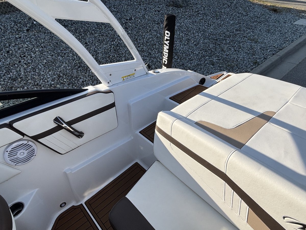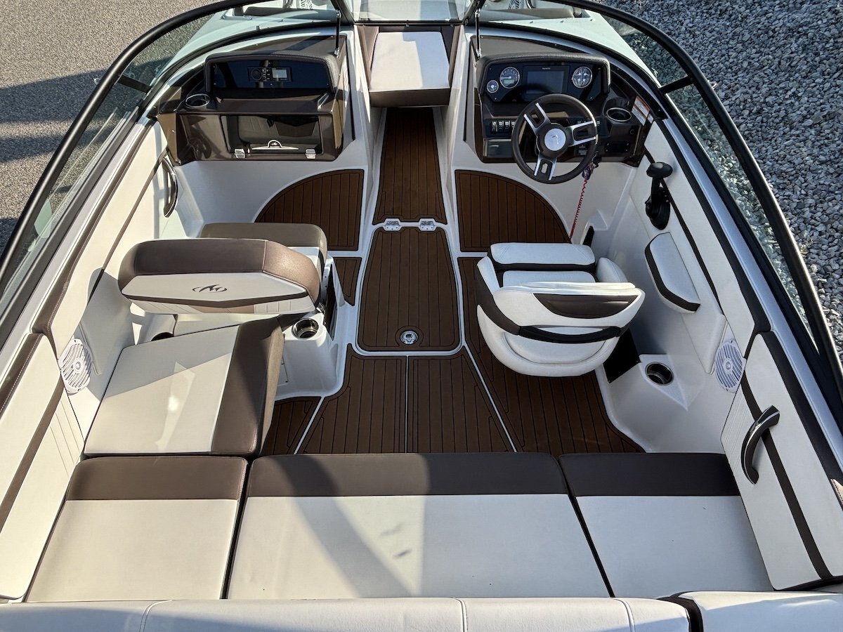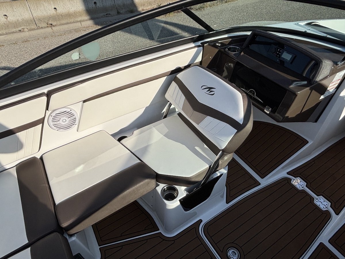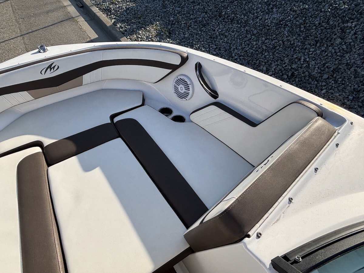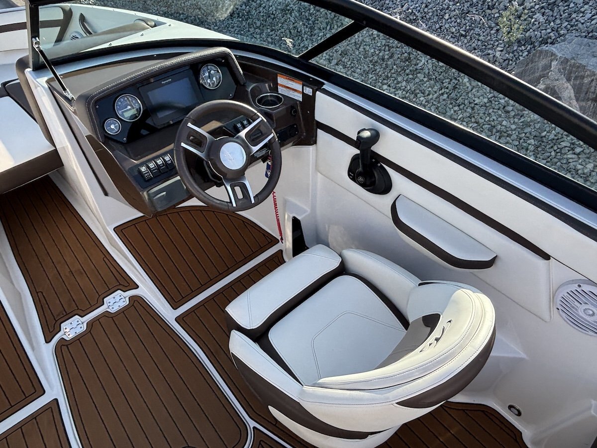 The power-packed M-20 boast sleek lines and fluid curves, and is loaded with amenities waiting to be embraced by both new and experienced boaters alike! Standard features include Monterey Boats patented Air Assist Chine, multiple stainless steel drink holders, an integral swim platform, along with multiple storage options. A stainless steel ski tow, telescoping and recessed swim ladder and sundeck come standard on the M-20, making it ideal for taking both you and your family anywhere you want to go!