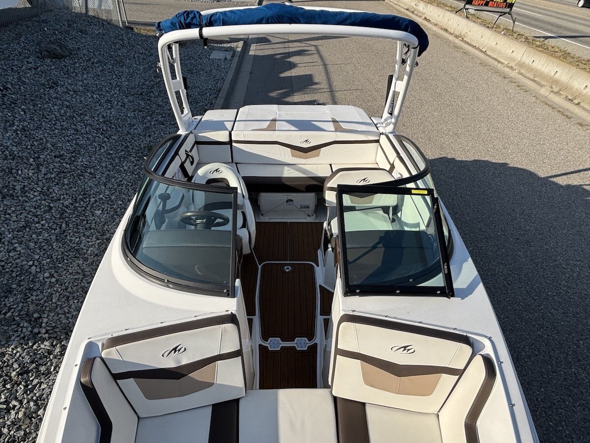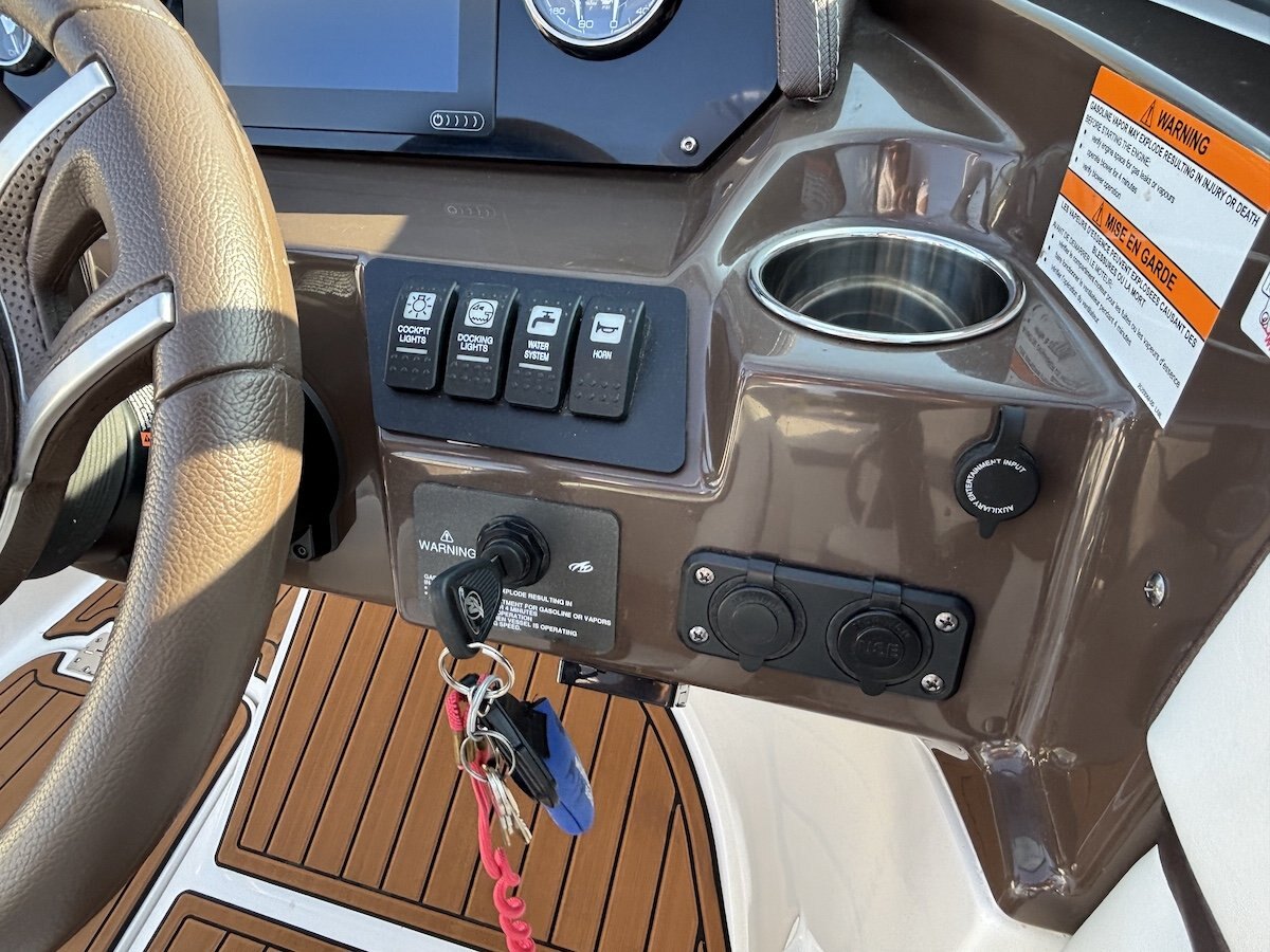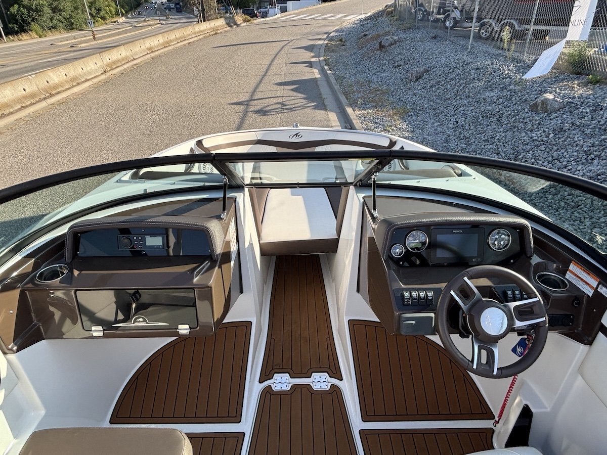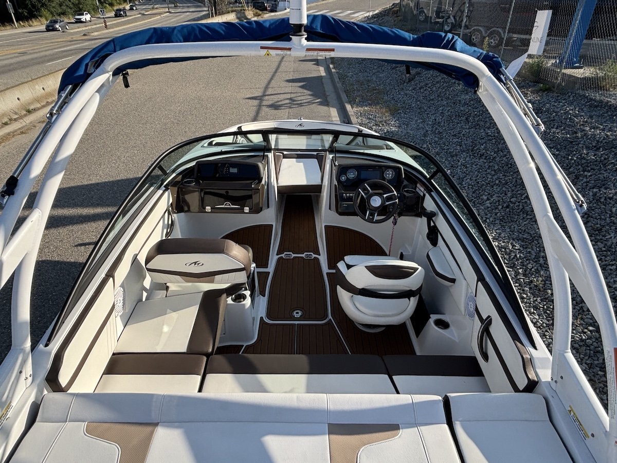 The power-packed M-20 boast sleek lines and fluid curves, and is loaded with amenities waiting to be embraced by both new and experienced boaters alike! Standard features include Monterey Boats patented Air Assist Chine, multiple stainless steel drink holders, an integral swim platform, along with multiple storage options. A stainless steel ski tow, telescoping and recessed swim ladder and sundeck come standard on the M-20, making it ideal for taking both you and your family anywhere you want to go!