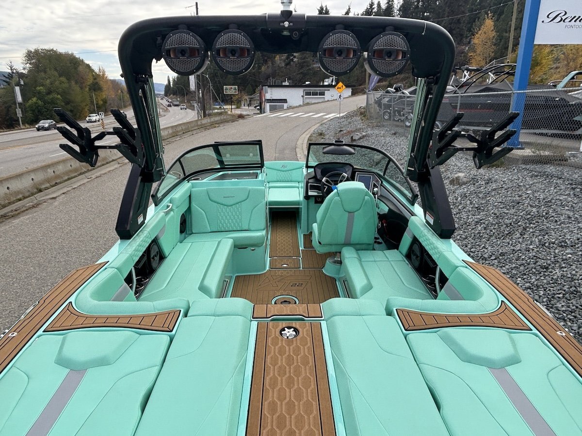 The XT22 delivers dynamic, athletic performance behind the boat thanks to a unique hull design and 3,350 pounds of ballast. Equipped with SurfStar, the XT22 offers the most customizable wakes and waves in the industry for every skill level. With three tower options, available FastFill, and the all-new pop-up pylon, the XT22 is ready to perform any and all on-water activities.